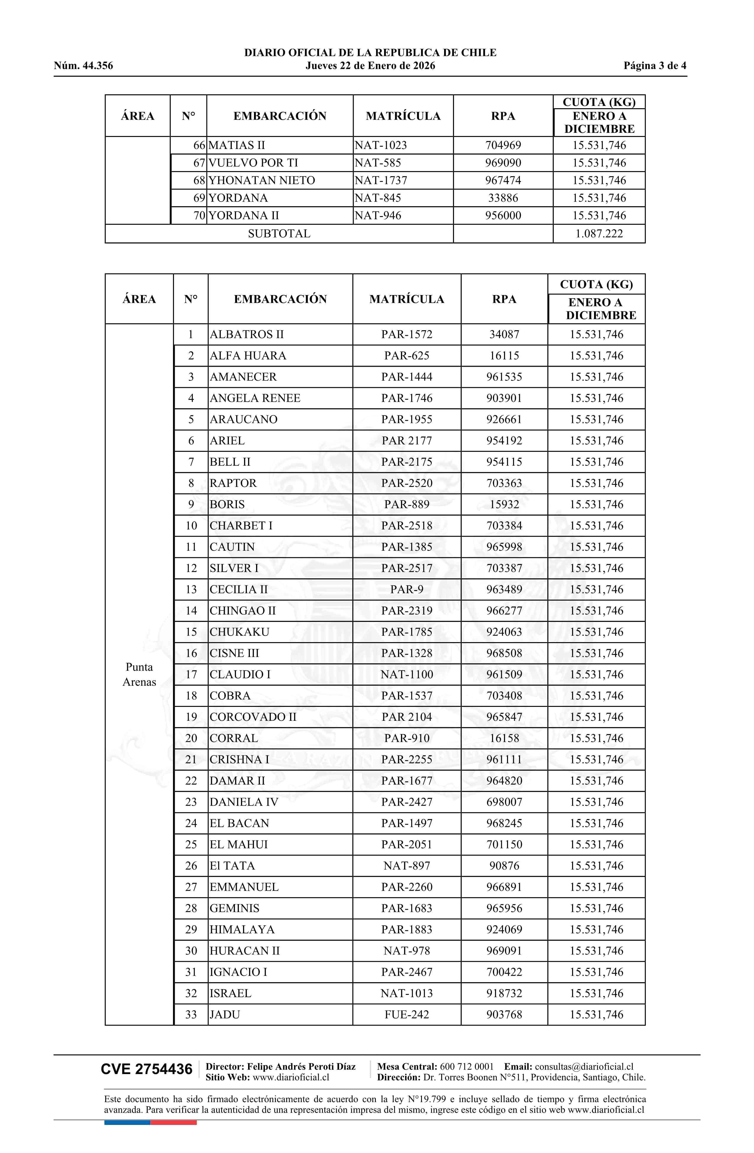 Extracto de resolución exenta número 37, de 2026.- Establece distribución histórica de la fracción artesanal de pesquería de Merluza del sur por área e individual en la Región de Magallanes y la Antártica Chilena, año 2026