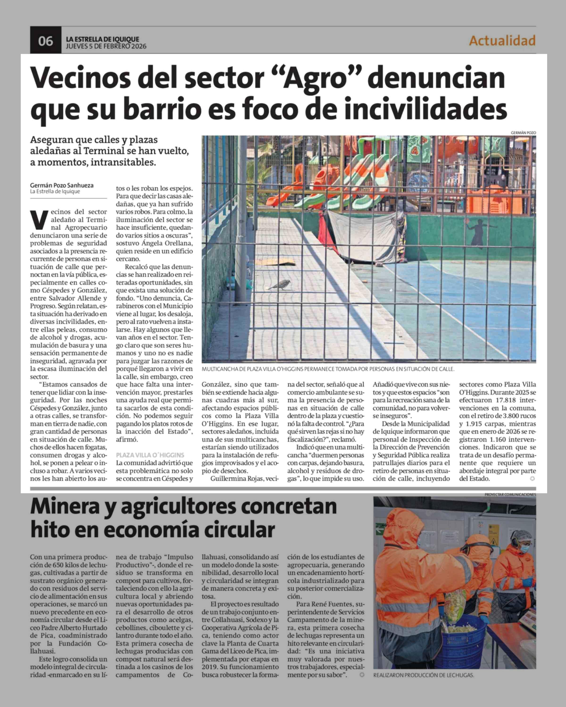 Vecinos del sector "Agro" denuncian que su barrio es foco de incivilidades 05-02-2026 La Estrella de Iquique |