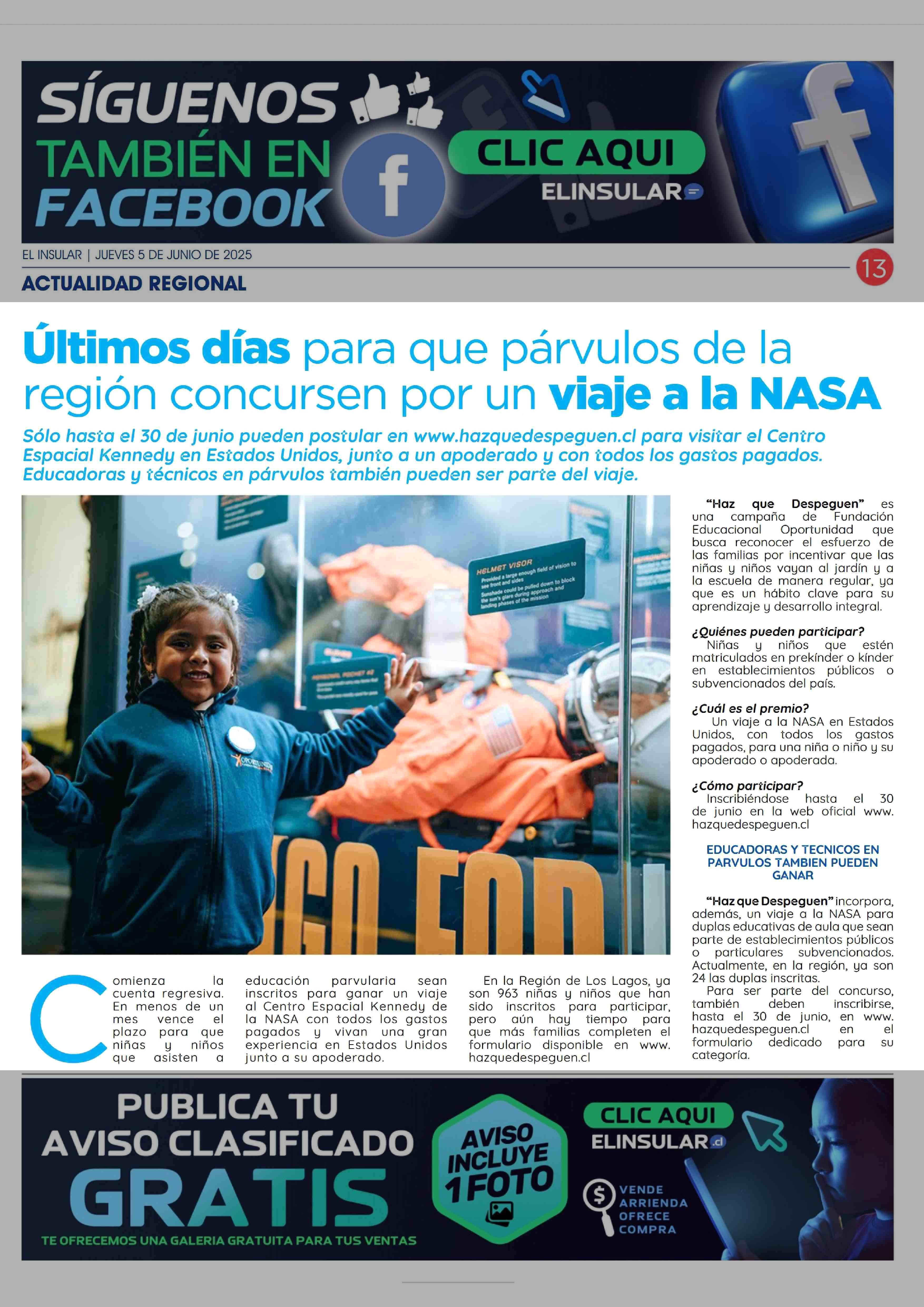 Ultimos días para que párvulos de la regán concursen por un viaje a la NASA 05-06-2025 El Insular |