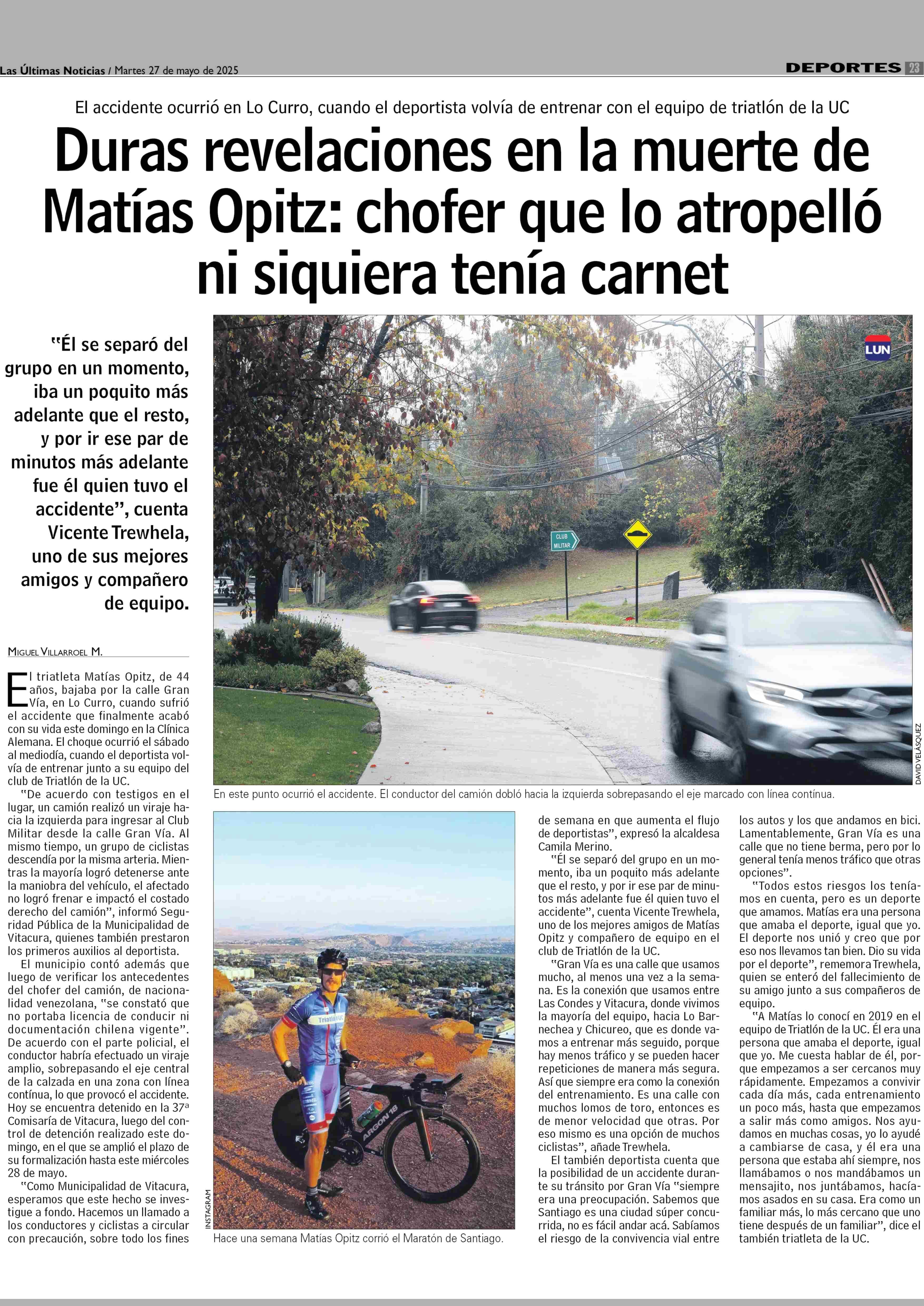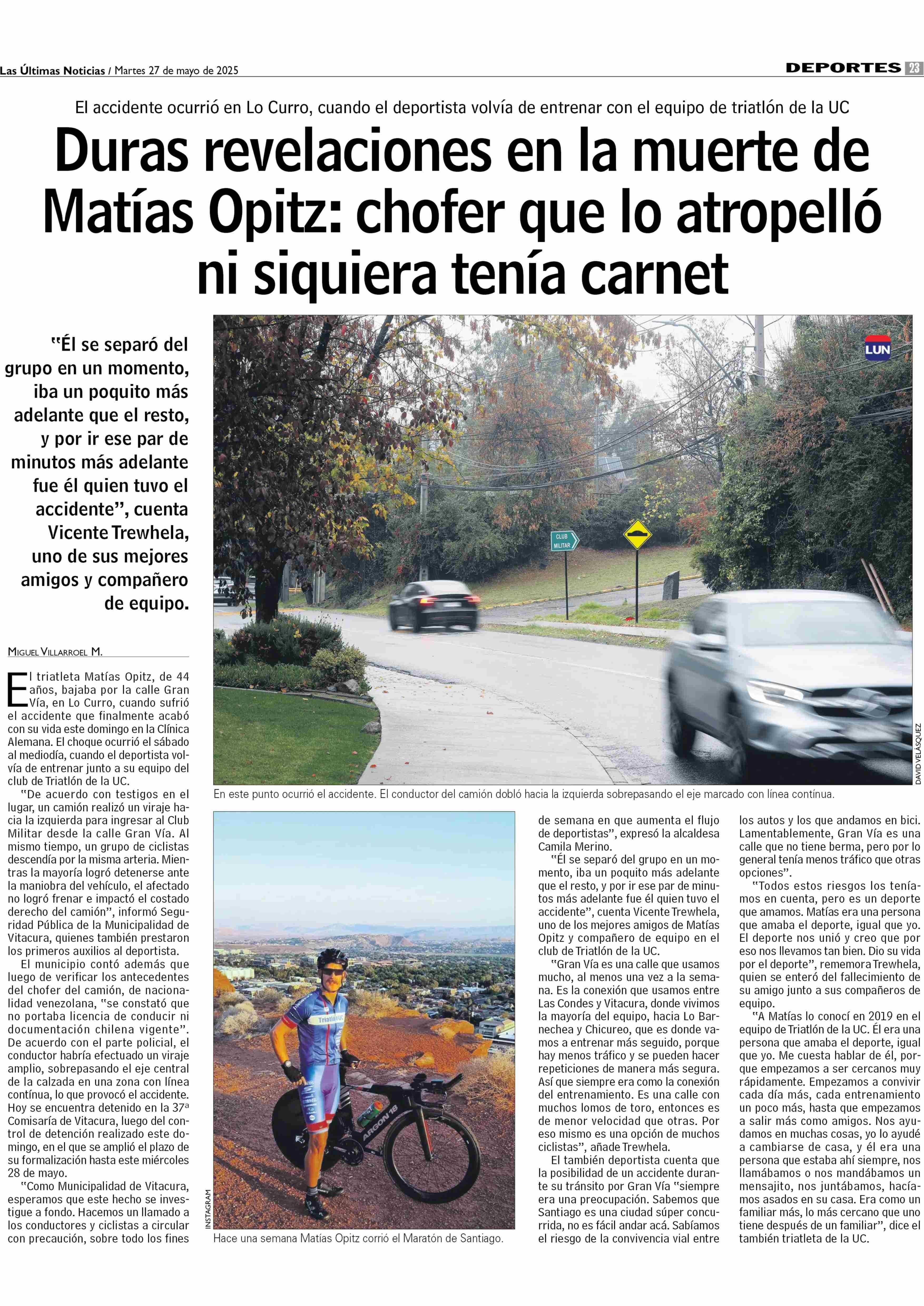 Título: Duras revelaciones en la muerte de Matias Oprtz: chofer que lo atropelló ni siquiera tenía carnet AA