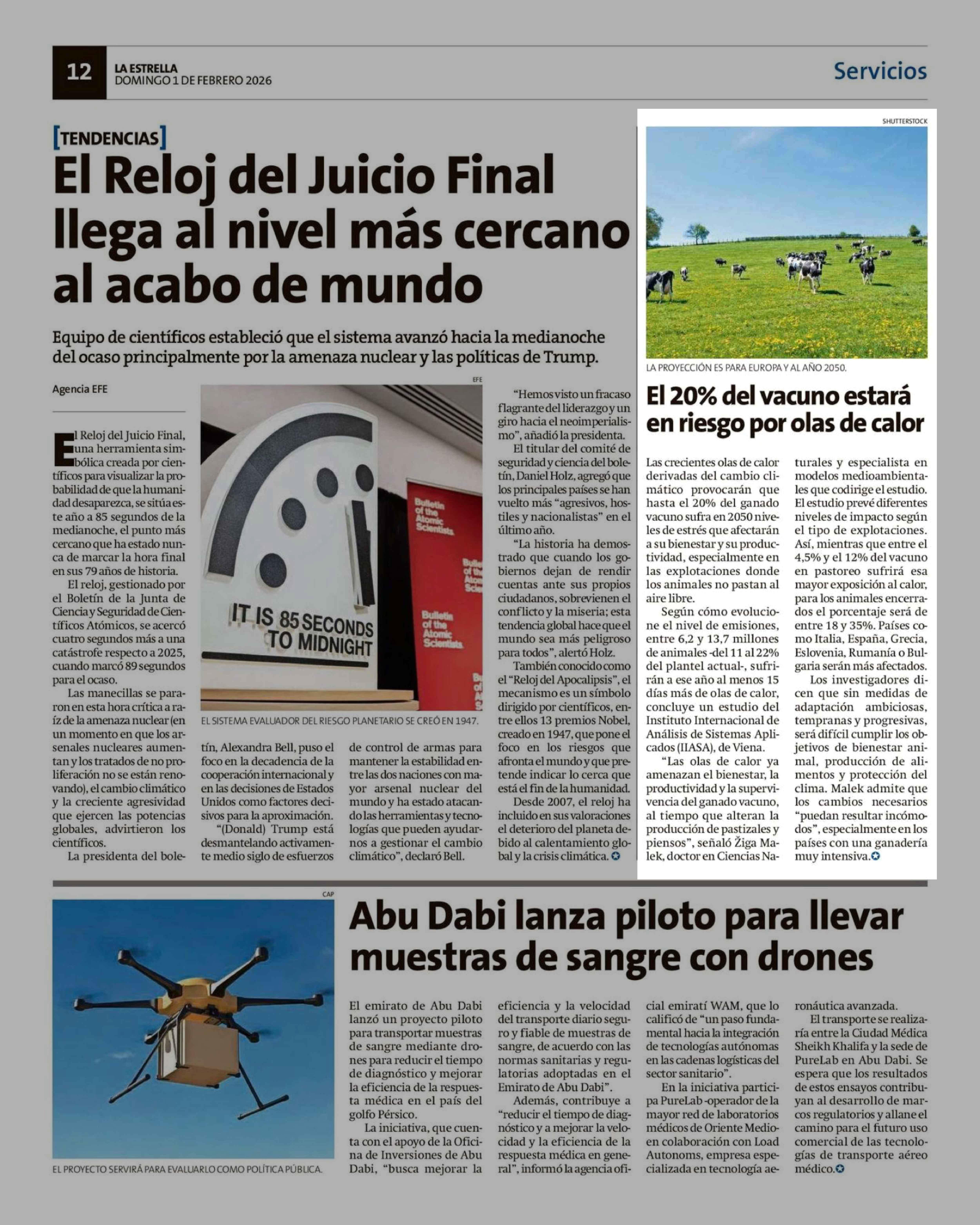 El 20% del vacuno estará en riesgo por olas de calor 01-02-2026 La Estrella de Chiloé |