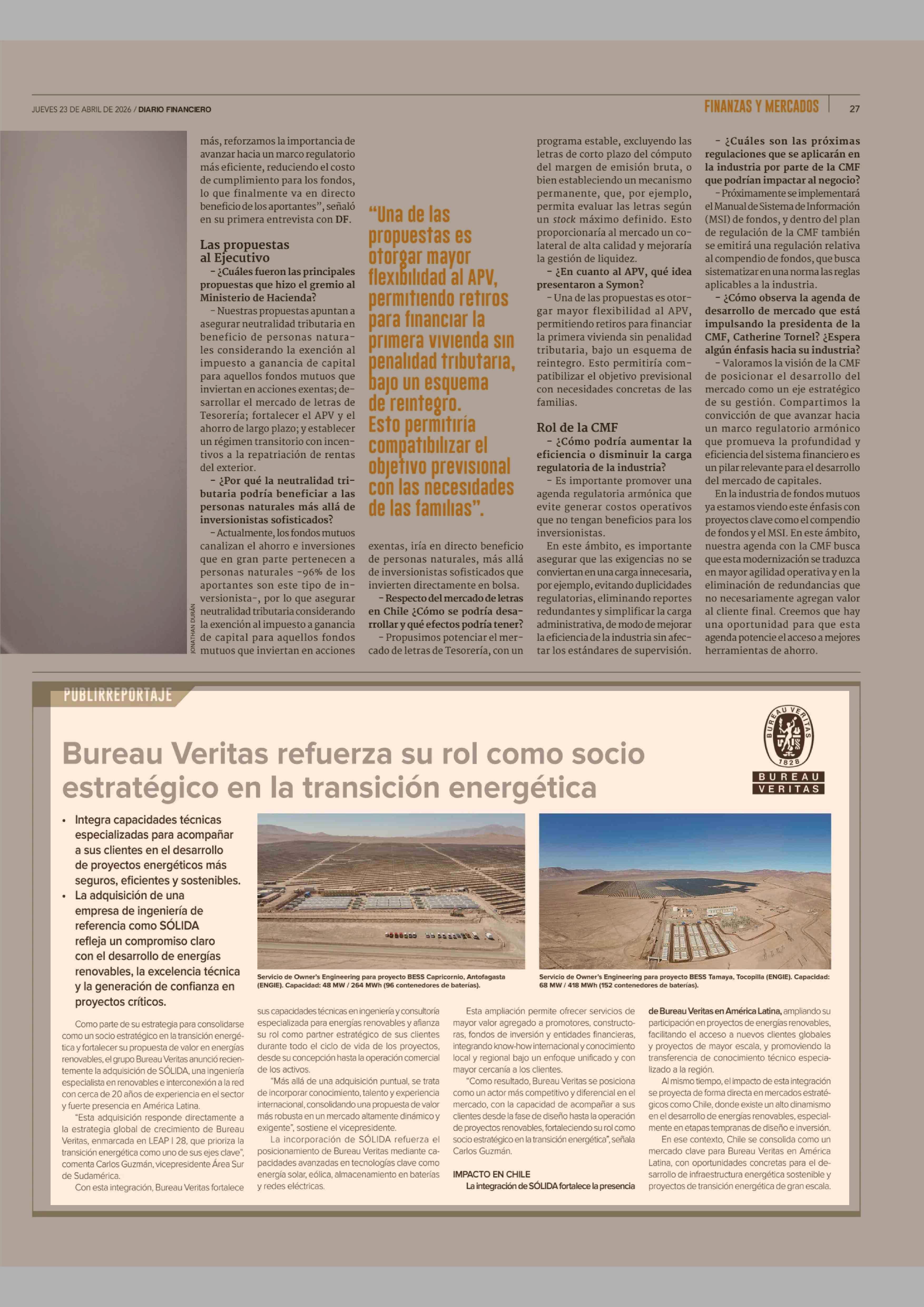 Fuente: Diario Financiero (Diario Financiero) Página(s): 27