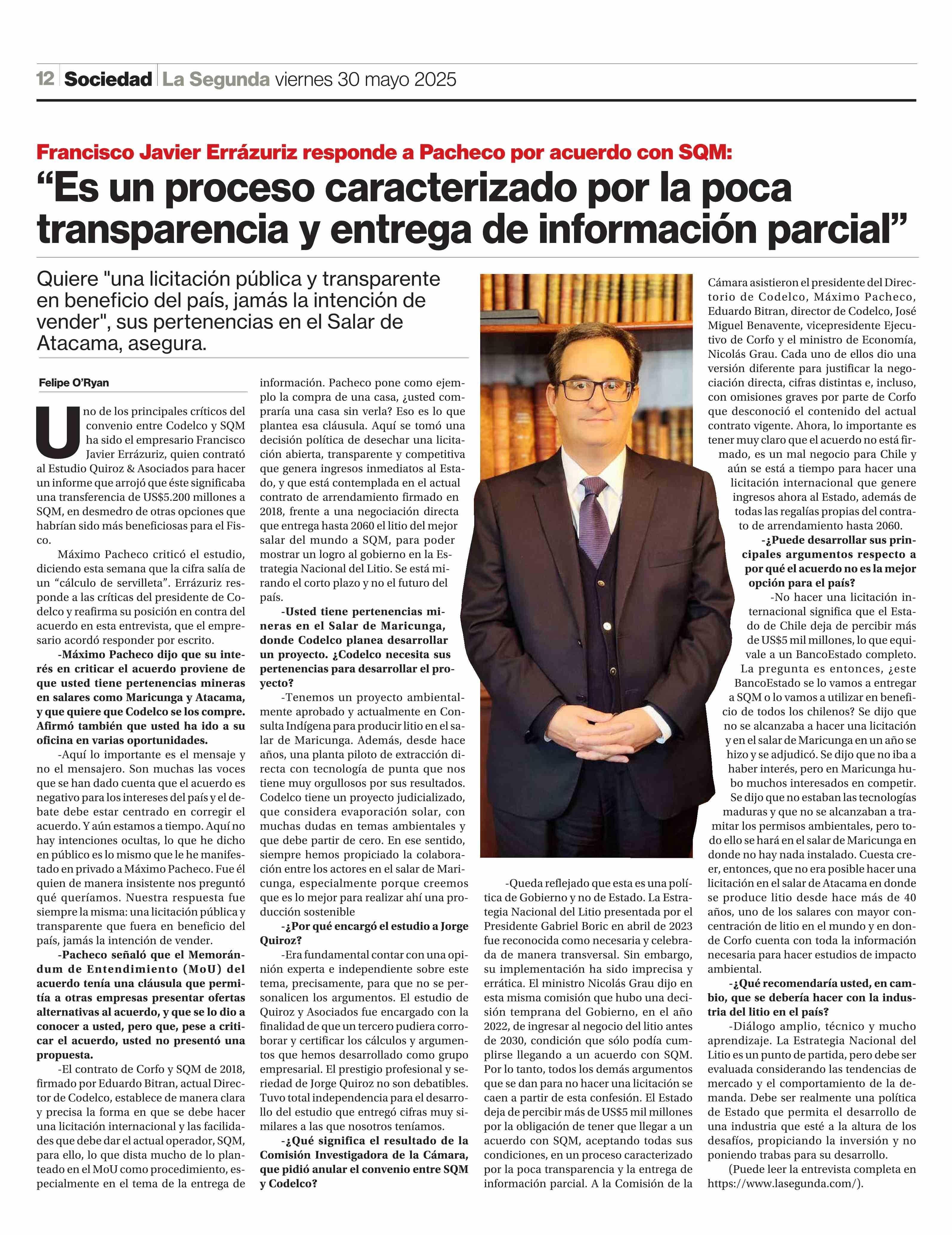 "Es un proceso caracterizado por la poca transparencia y entrega de información parcial" 30-05-2025 La Segunda |