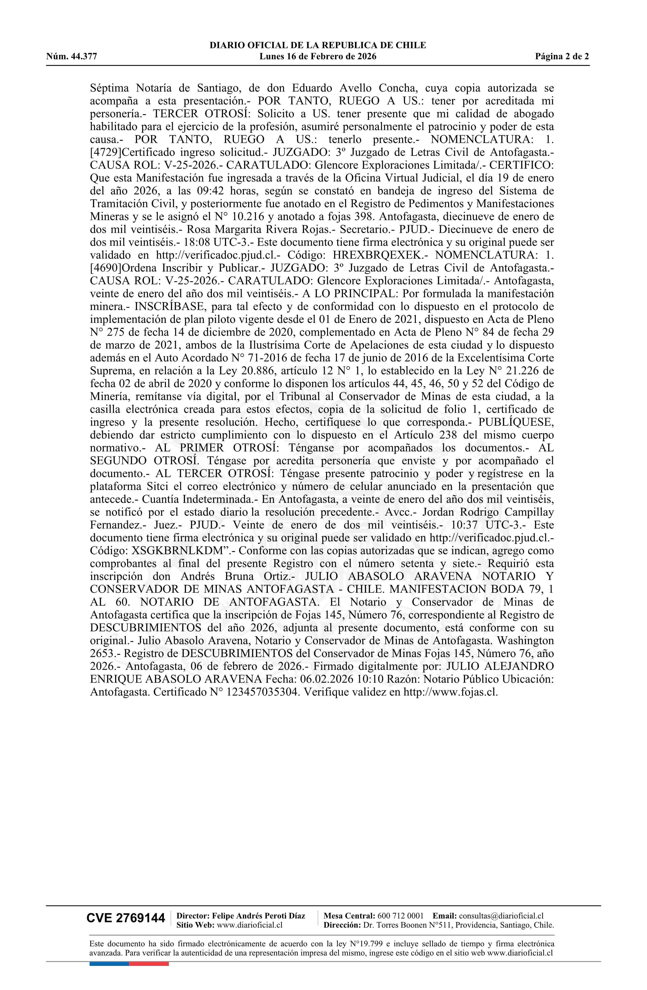 16-02-2026 DIARIO OFICIAL CHILE - BOLETÍN OFICIAL DE MINERÍA
