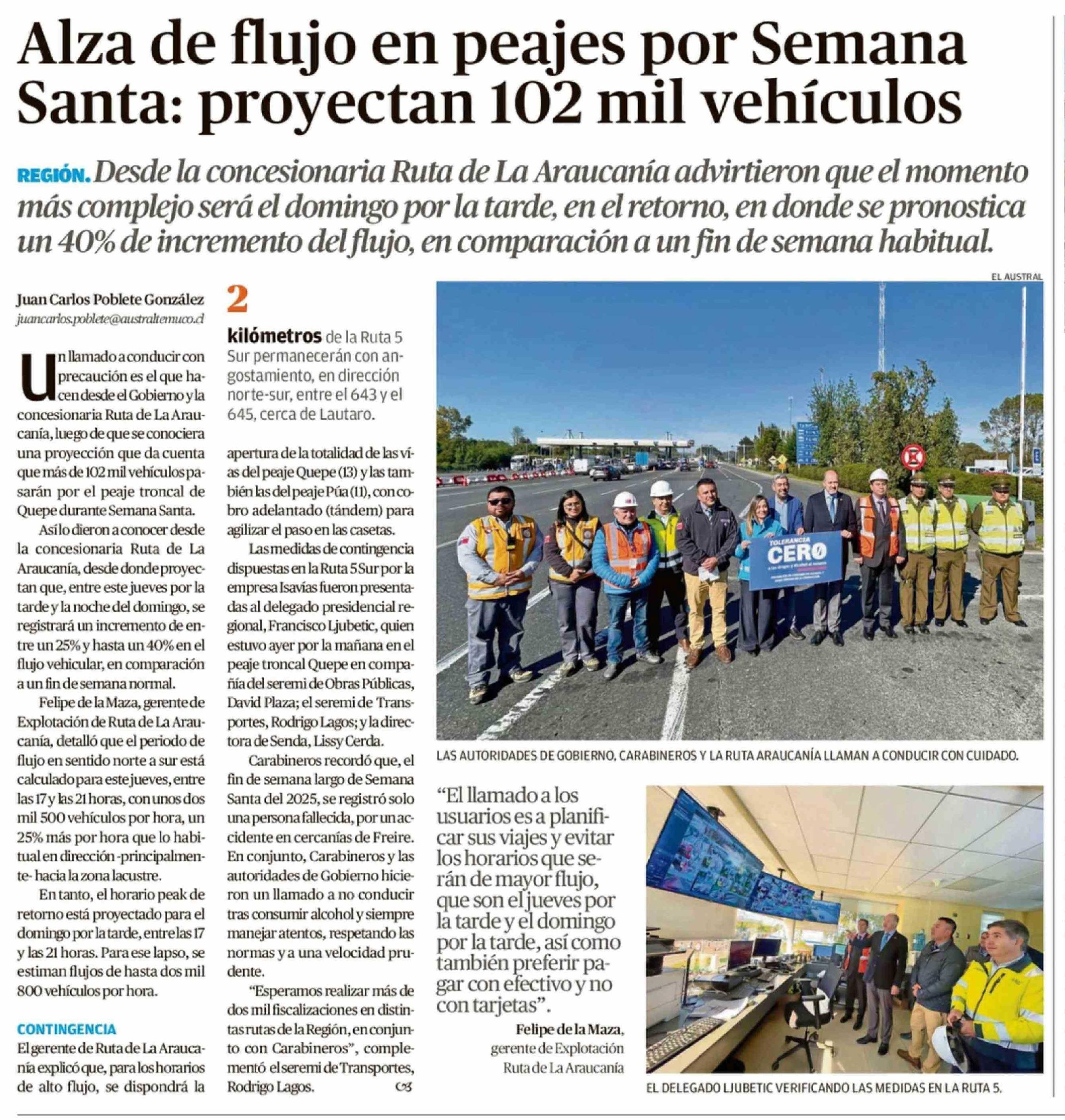 Título: Alza de flujo en peajes por Semana Santa: proyectan 102 mil vehículos