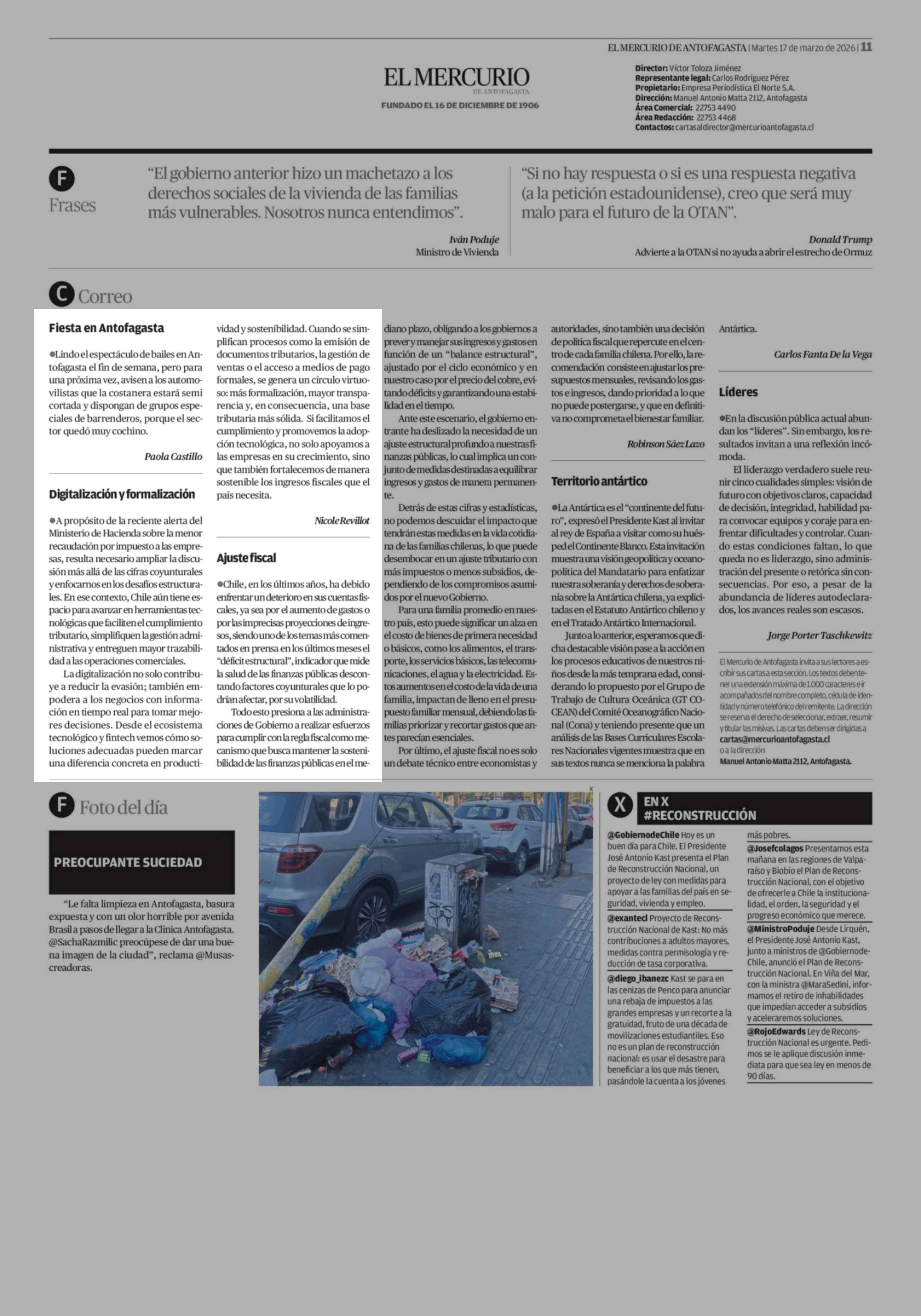 Cartas: Digitalización y formalización 17-03-2026 El Mercurio de Antofagasta |