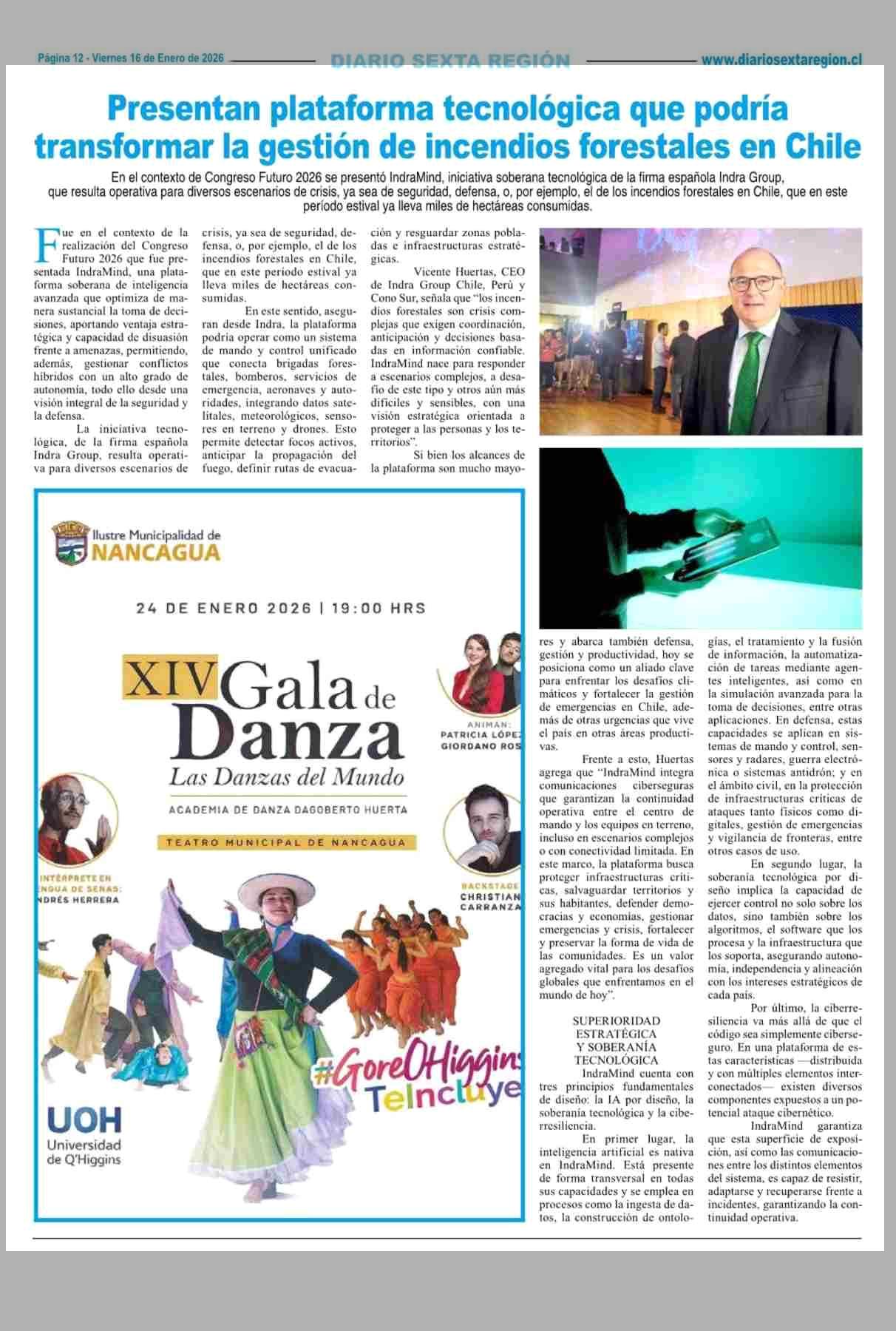Presentan plataforma tecnológica que podría transformar la gestión de incendios forestales en Chile 16-01-2026 Diario VI Región |