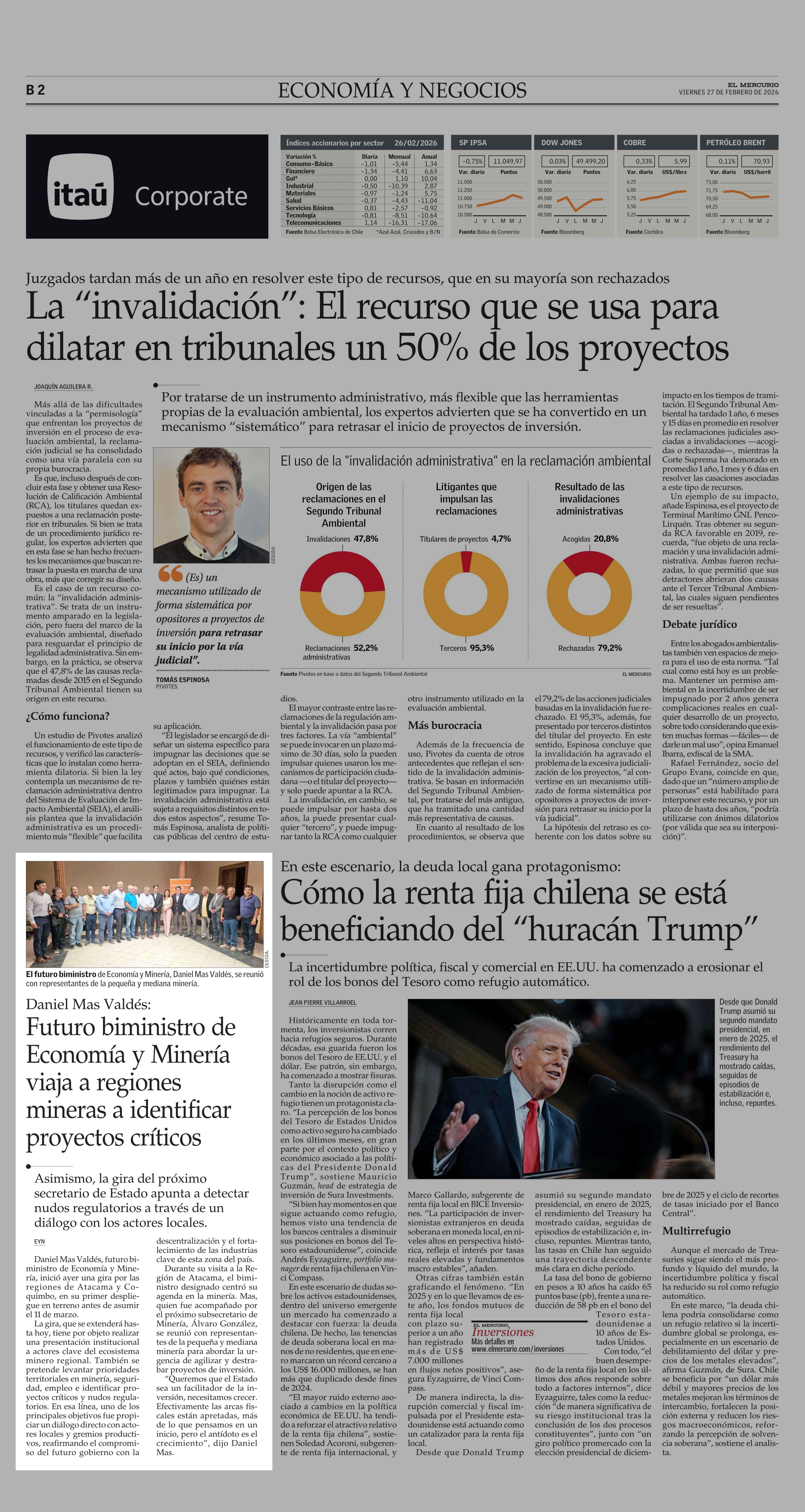 Futuro biministro de Economía y Minería viaja a regiones mineras a identificar proyectos críticos 27-02-2026 El Mercurio |
