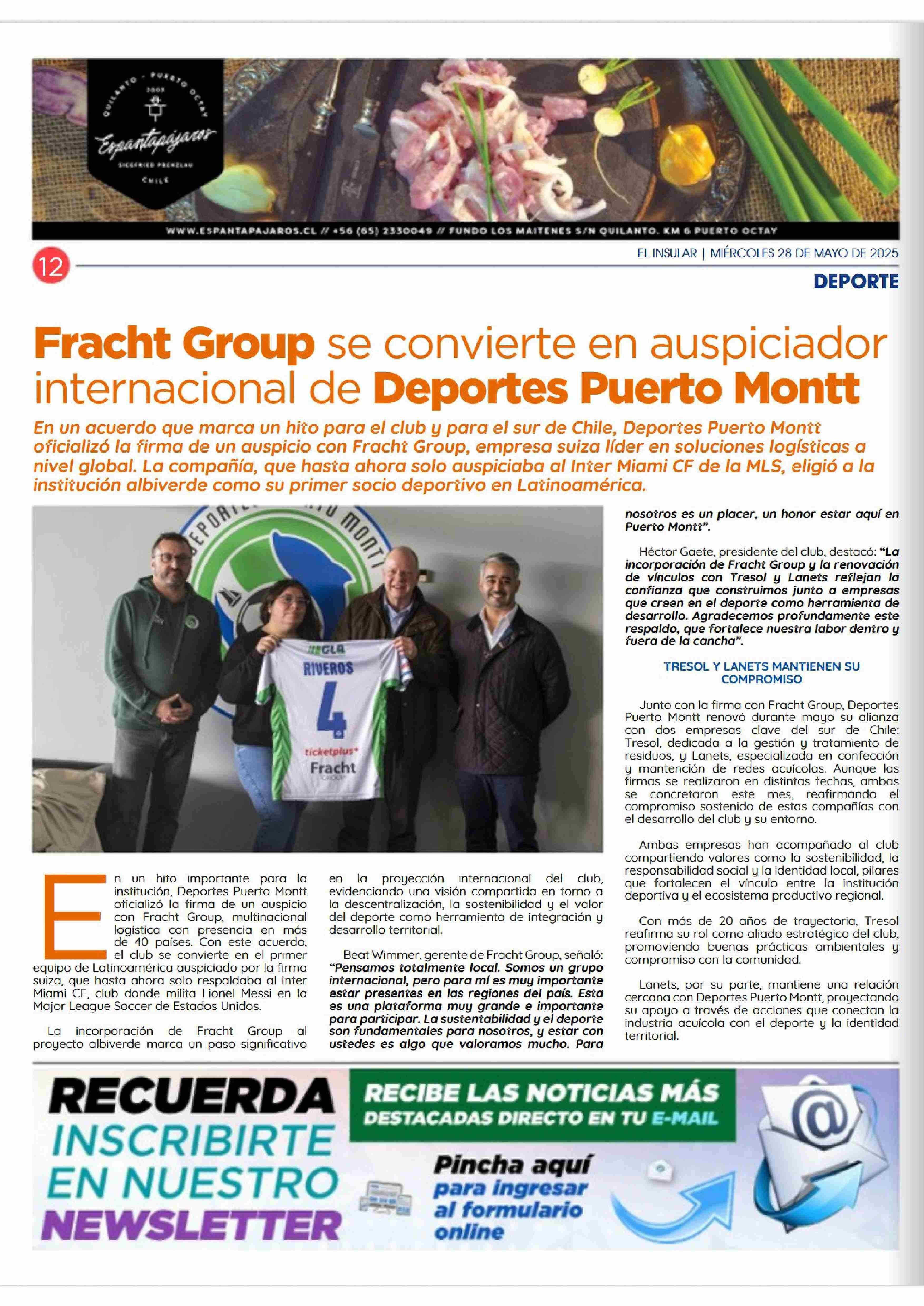 Fracht Group se convierte en auspiciador internacional de Deportes Puerto Montt 28-05-2025 El Insular |