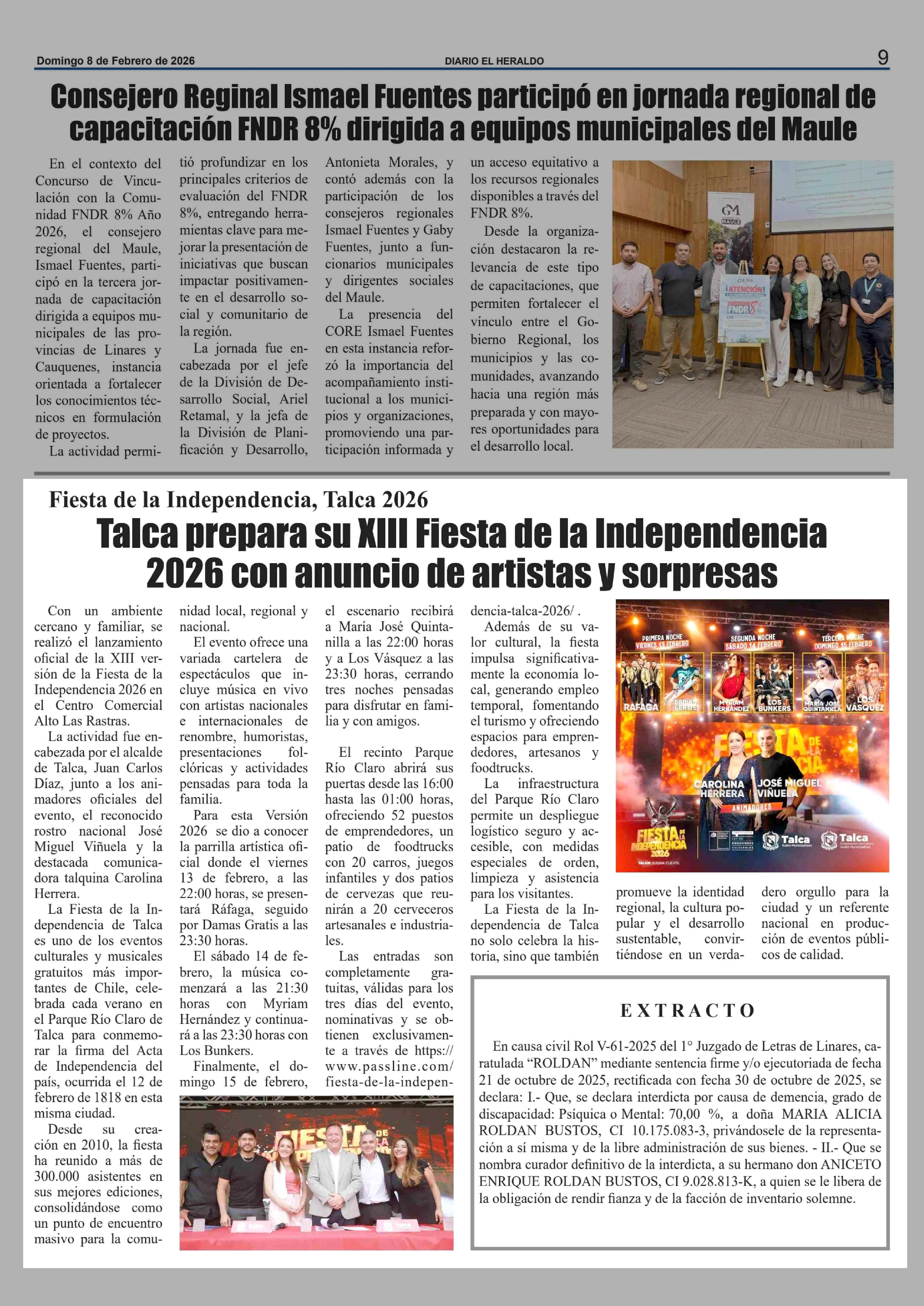 Talca prepara su XIII Fiesta de la Independencia 2026 con anuncio de artistas y sorpresas 08-02-2026 El Heraldo |
