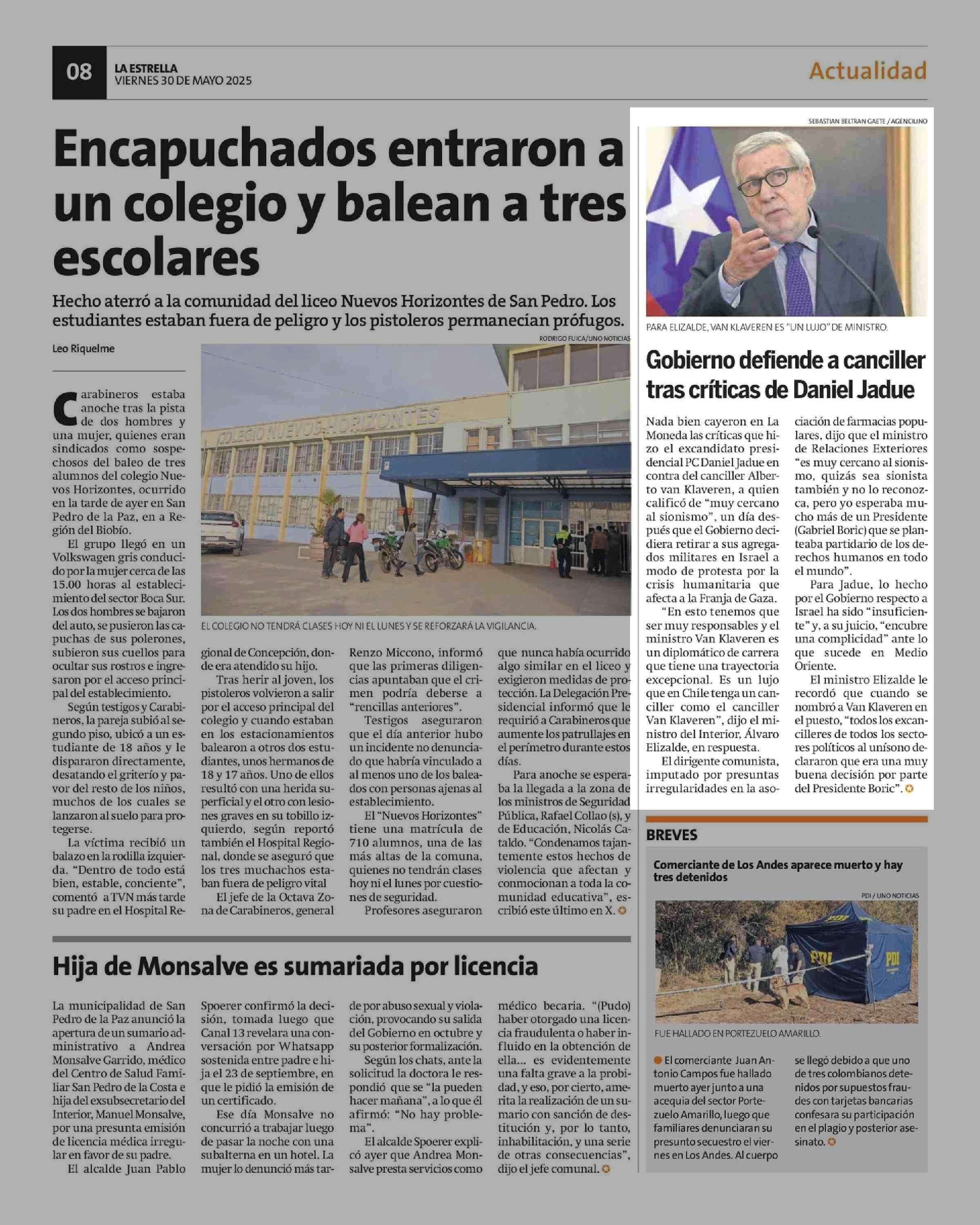 Gobierno defiende a canciller tras críticas de Daniel Jadue 30-05-2025 La Estrella de Antofagasta |