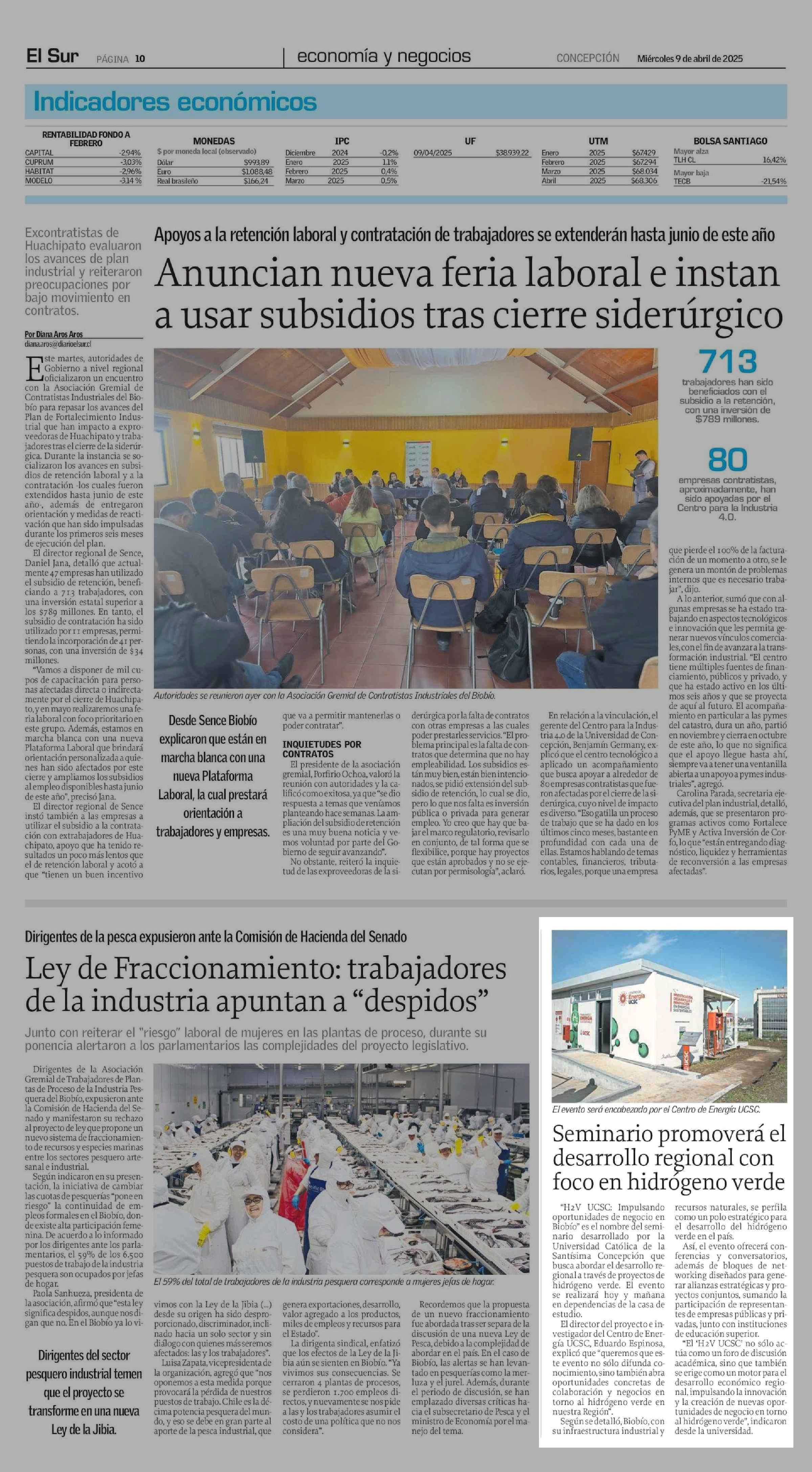 Seminario promoverá el desarrollo regional con foco en hidrógeno verde 09-04-2025 El Sur |