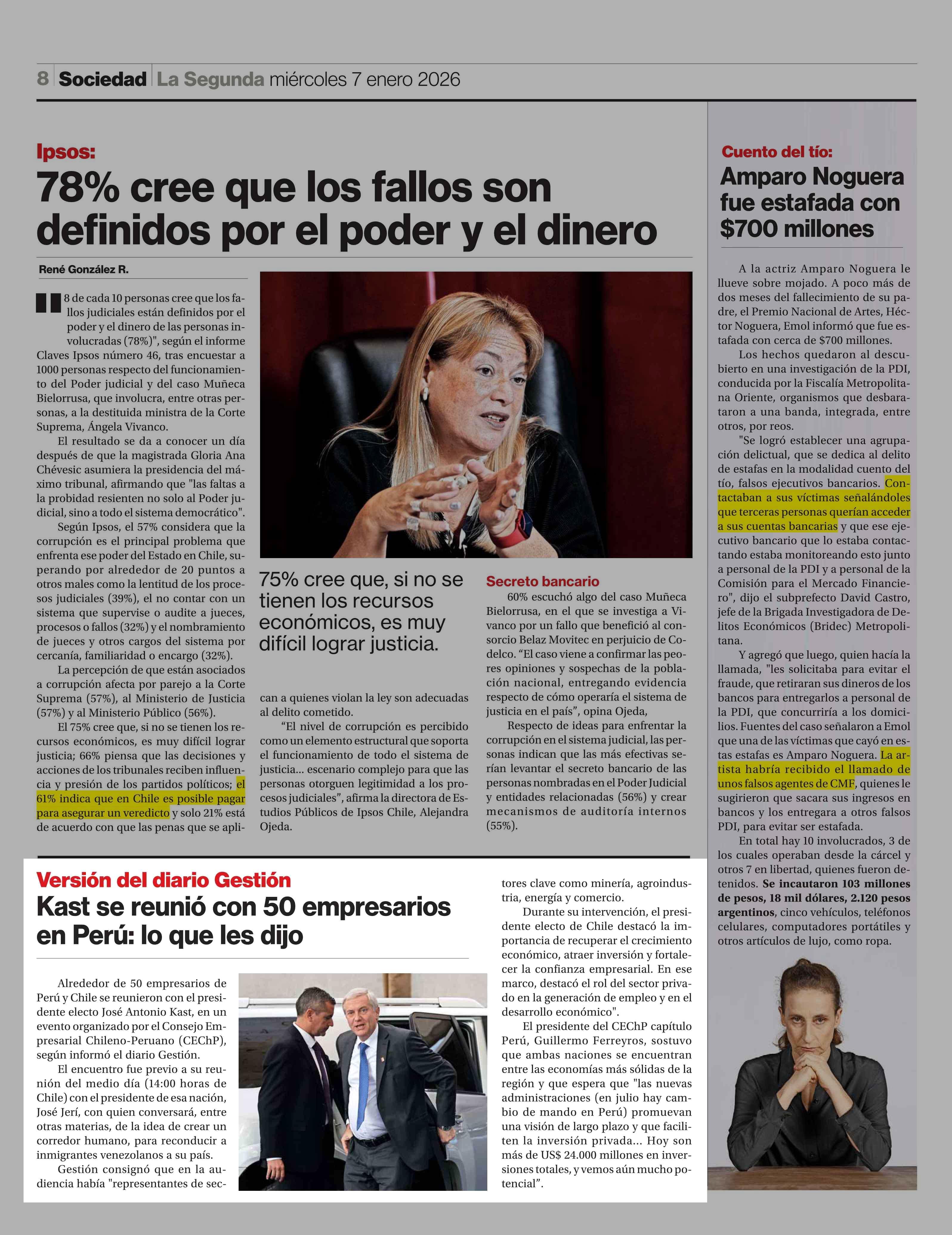 Kast se reunió con 50 empresarios en Perú: lo que les dijo 07-01-2026 La Segunda |