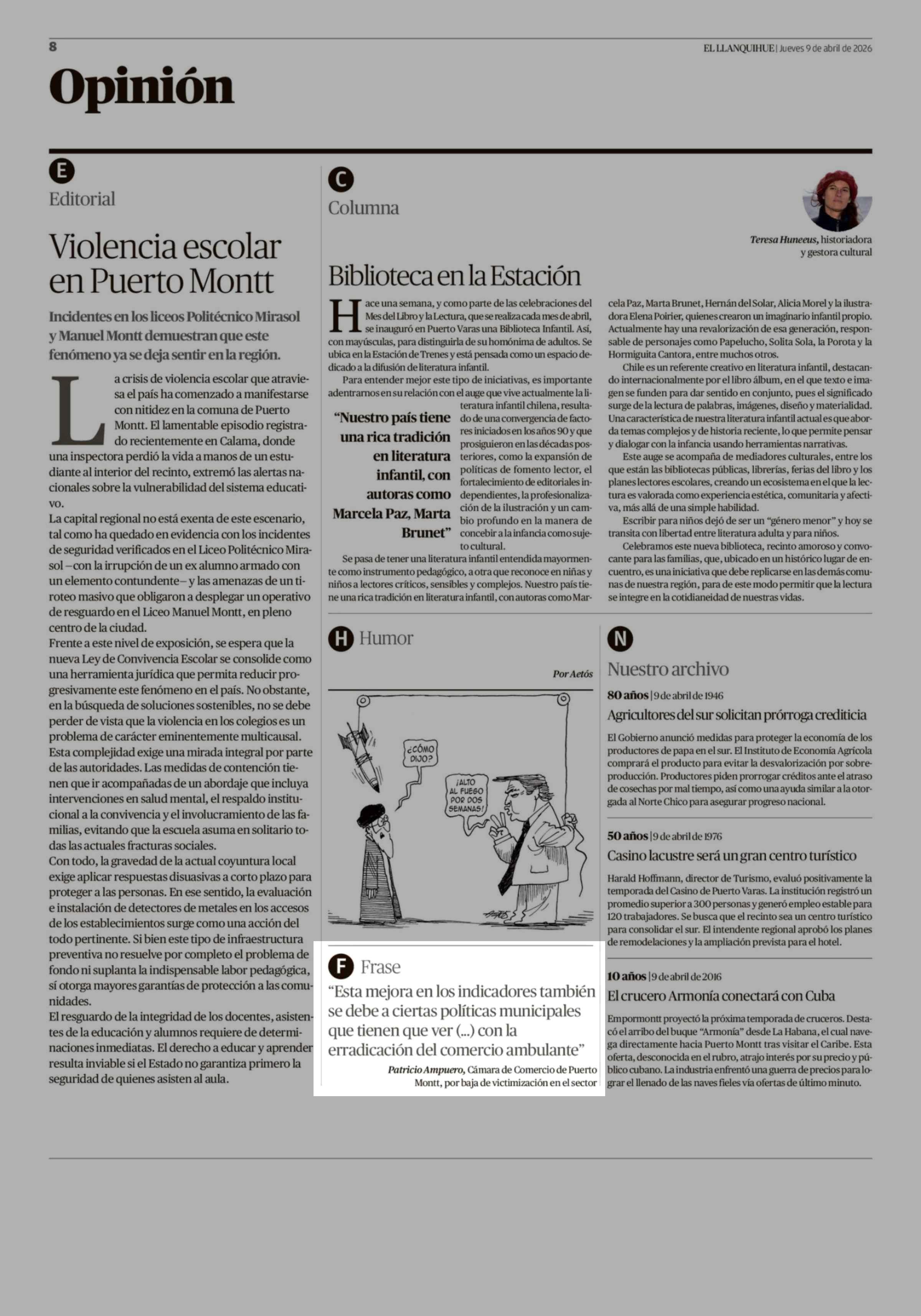 | Fecha: | 09-04-2026 | Sector: | Noticia general | Región: | Región de Los Lagos |
