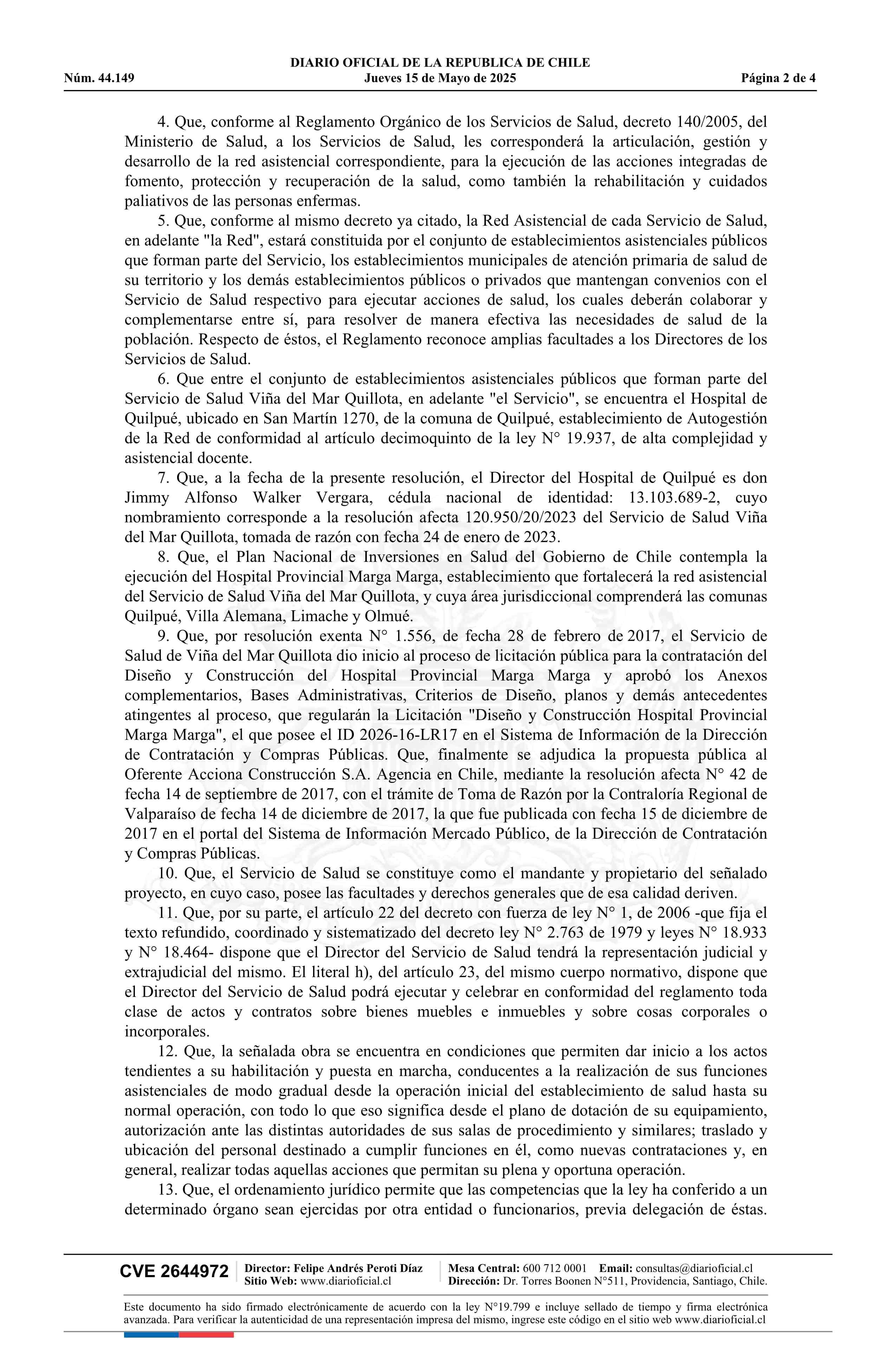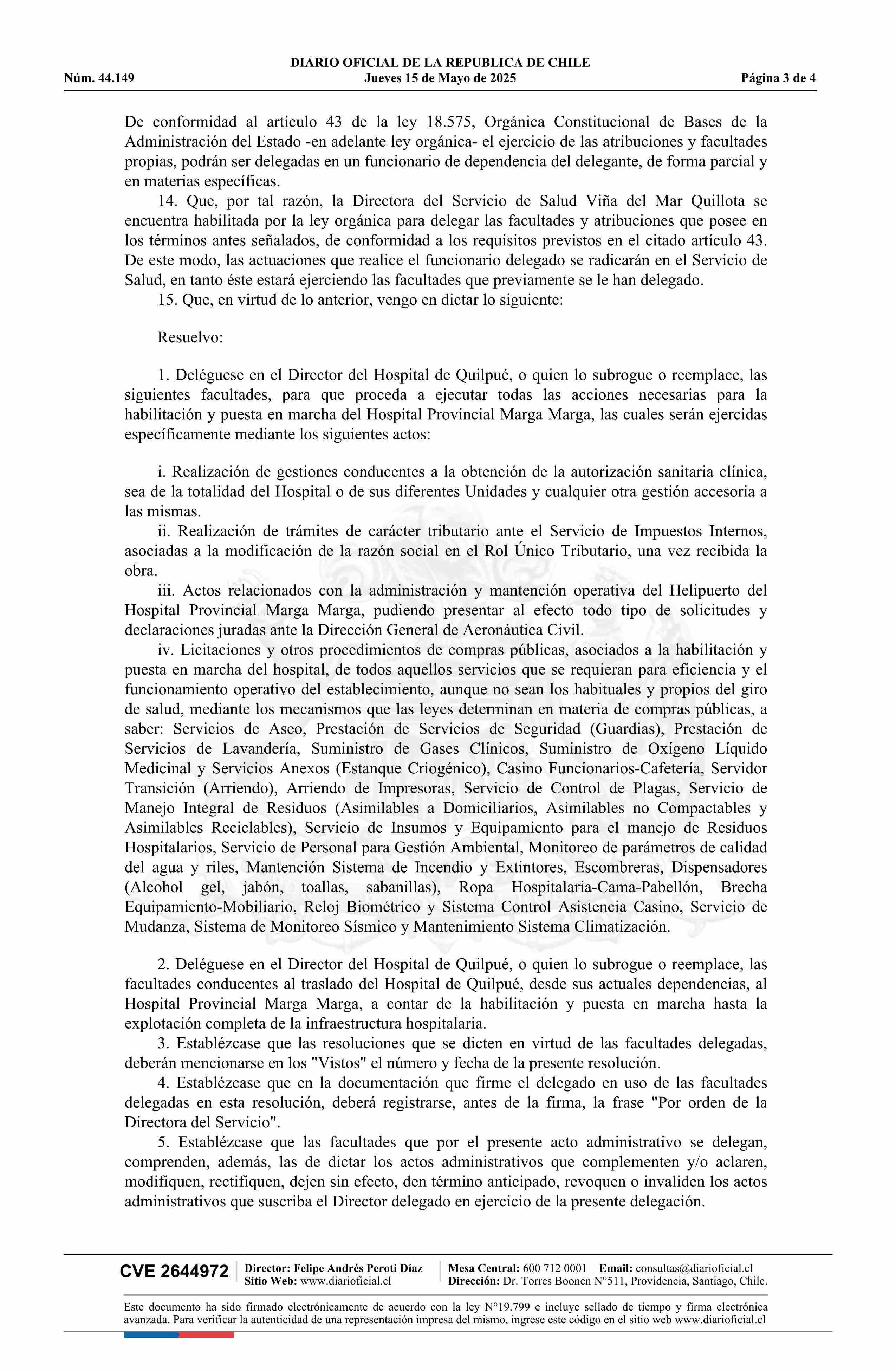 Resolución exenta número 7.833, de 2024.- Delega facultades que indica en el Director del Hospital de Quilpué 15-05-2025 Diario Oficial Edición Electrónica |