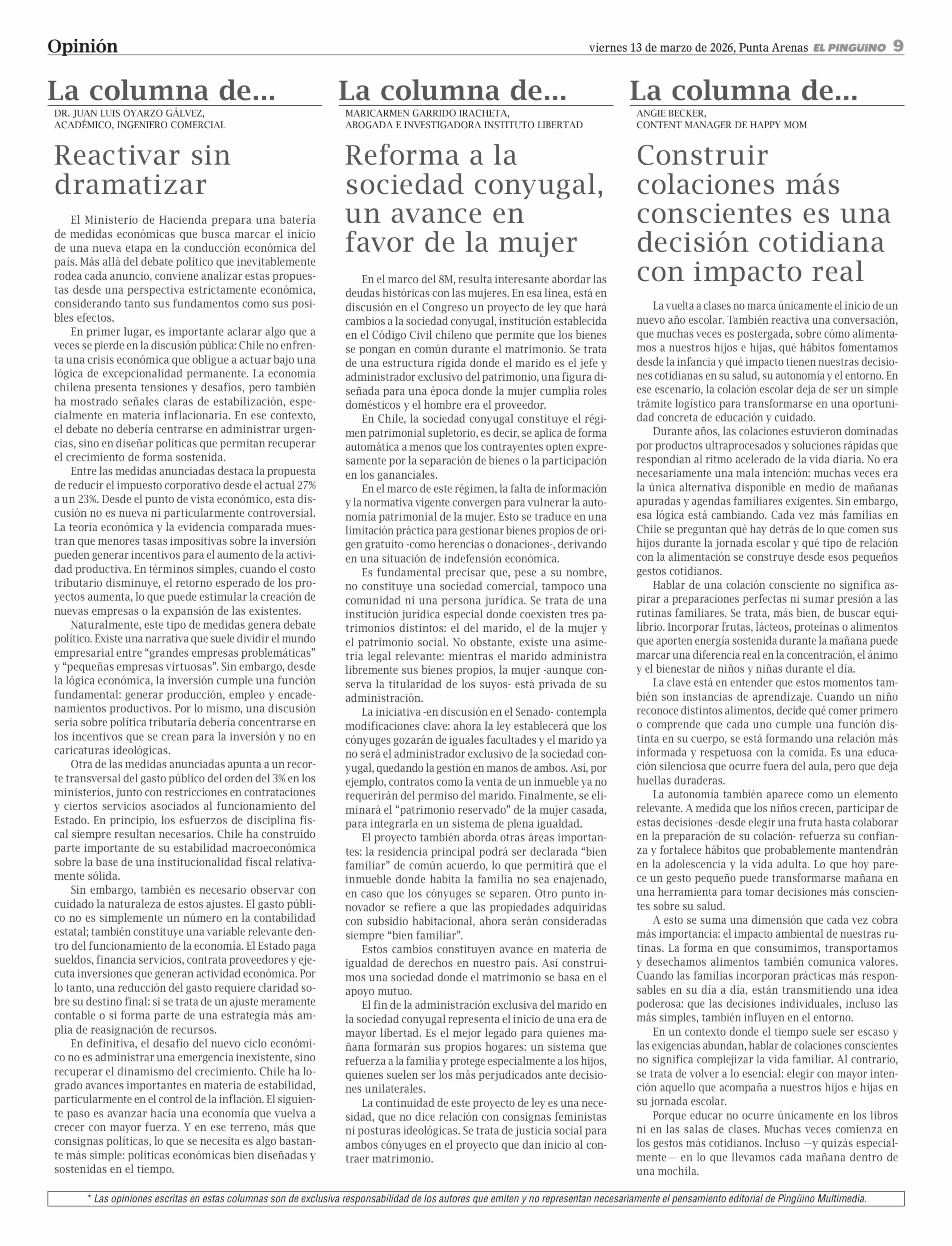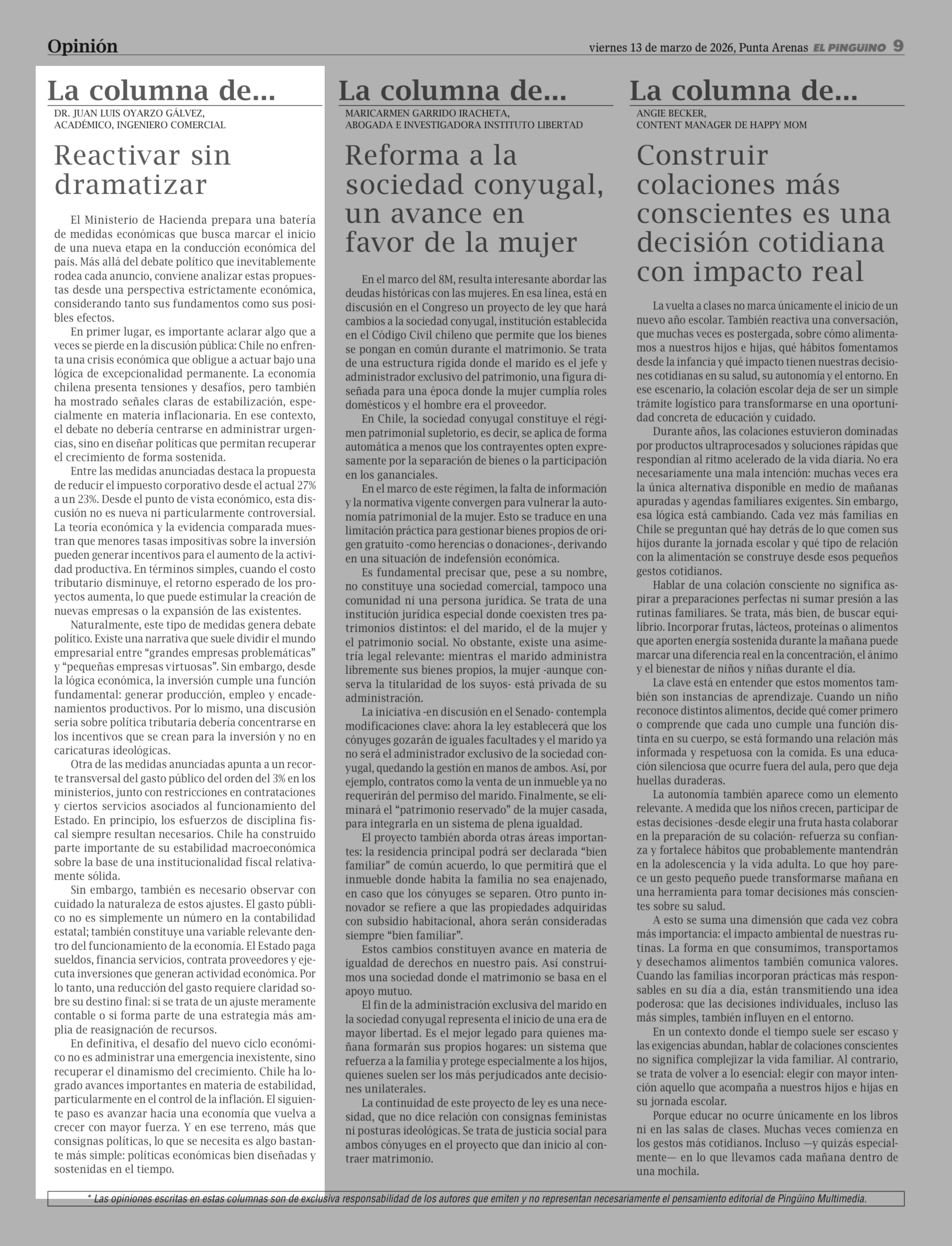 Columnas de Opinión: Reactivar sin dramatizar 13-03-2026 El Pingüino |