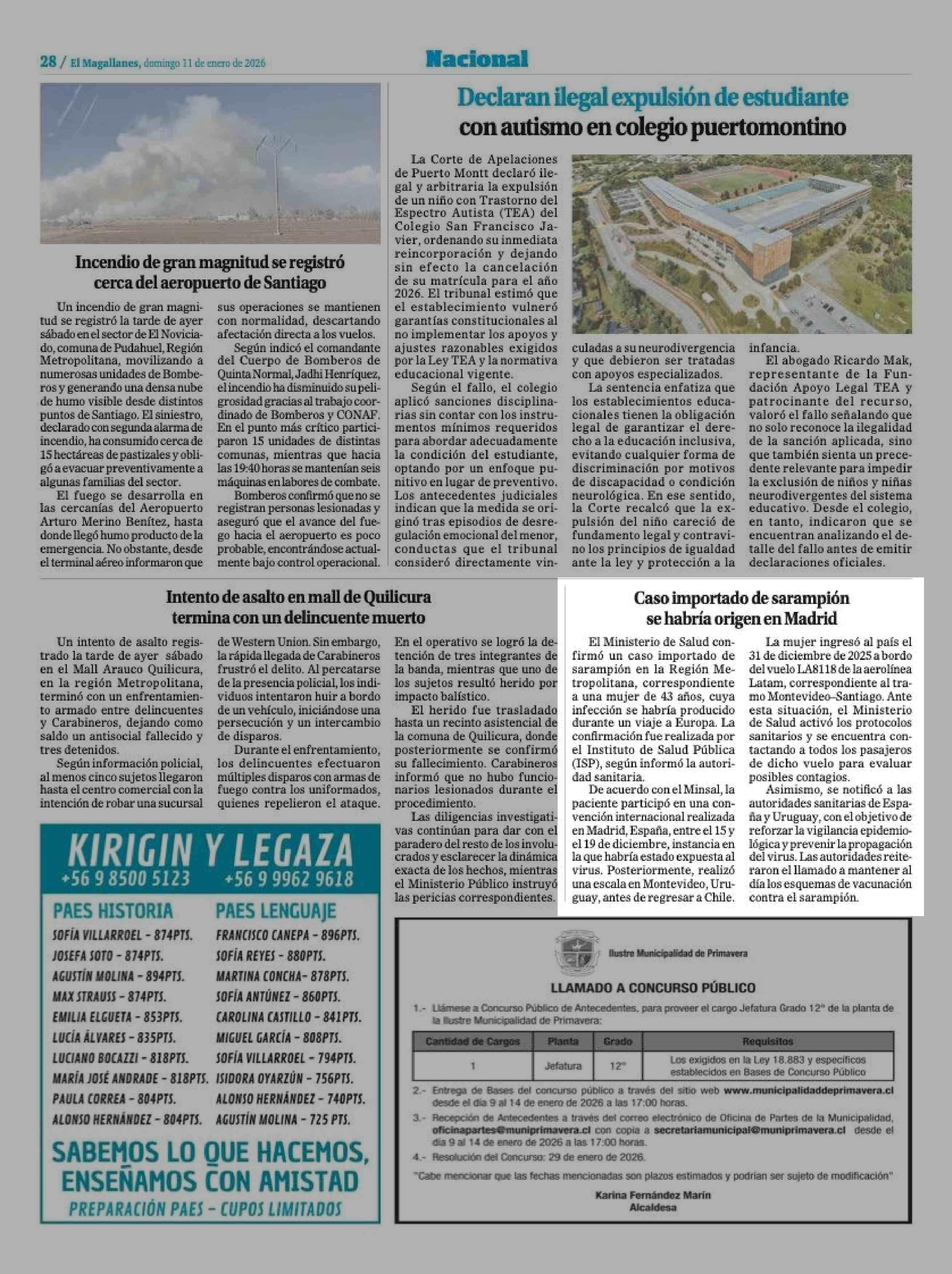 | Fecha: | 11-01-2026 | Sector: | Noticia general | Región: | Región de Magallanes y de la Antártica Chilena |
