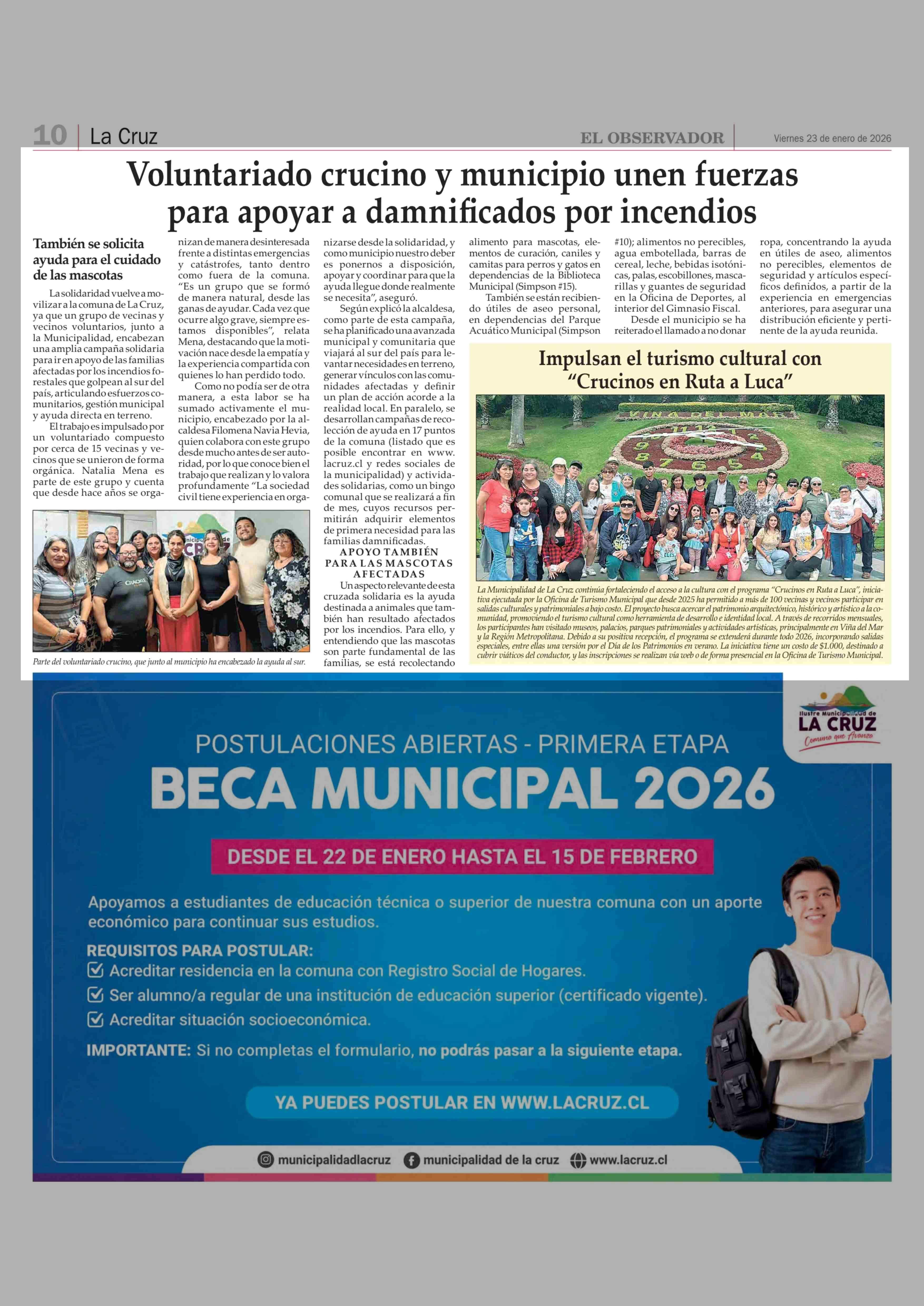 Voluntariado crucino y municipio unen fuerzas para apoyar a damnificados por incendios 23-01-2026 El Observador |
