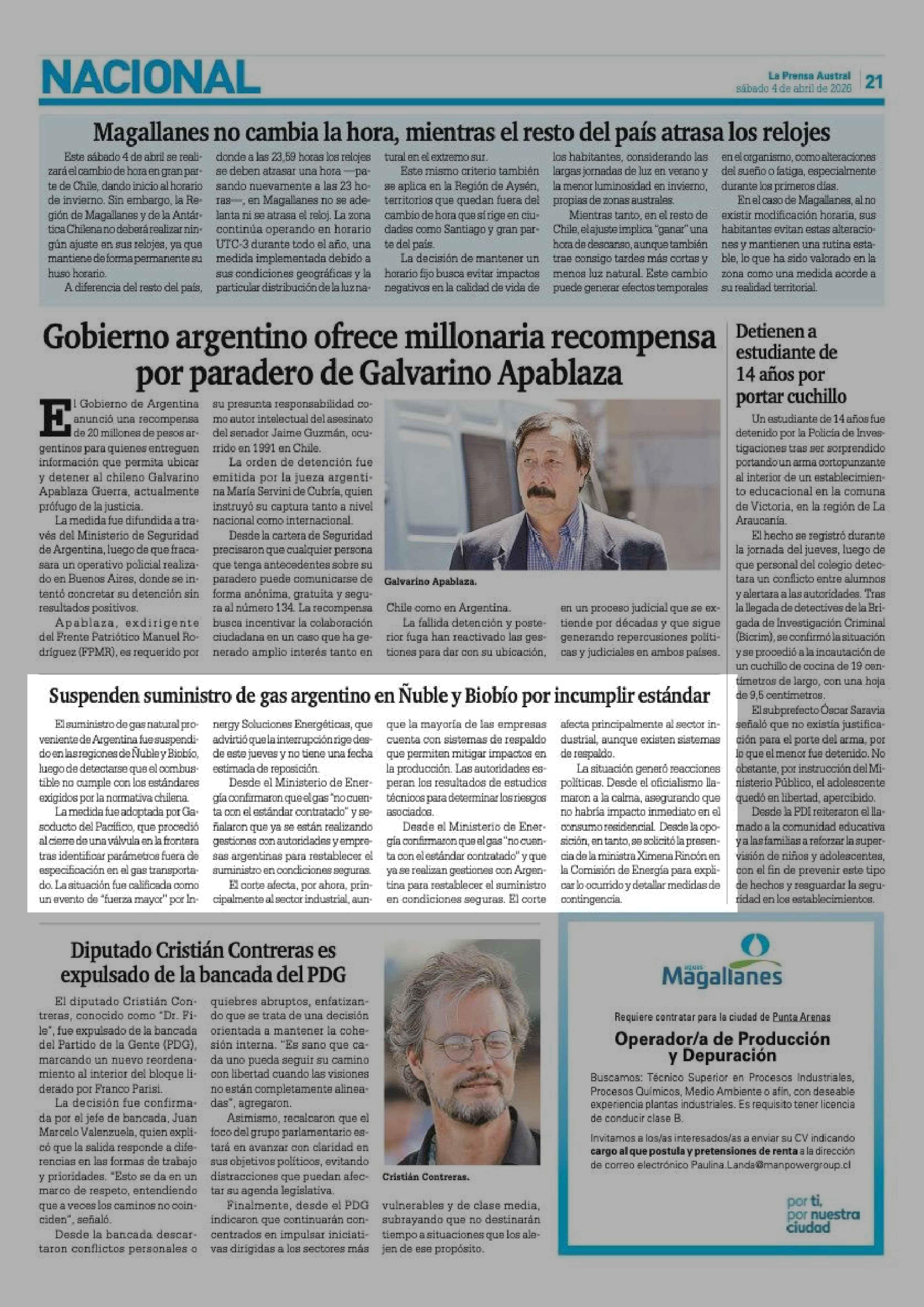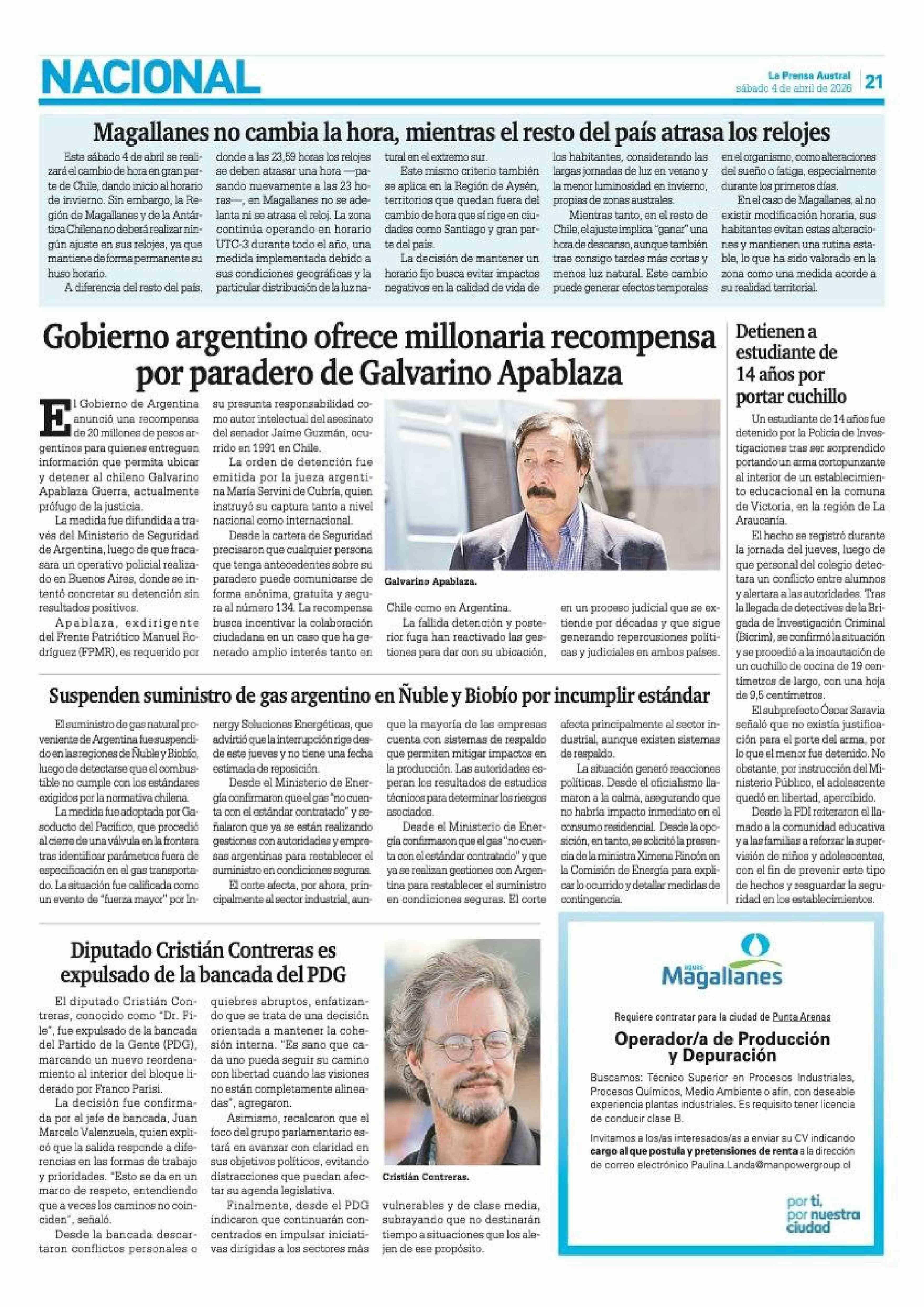 Fuente: La Prensa Austral (La Prensa Austral) Página(s): 21