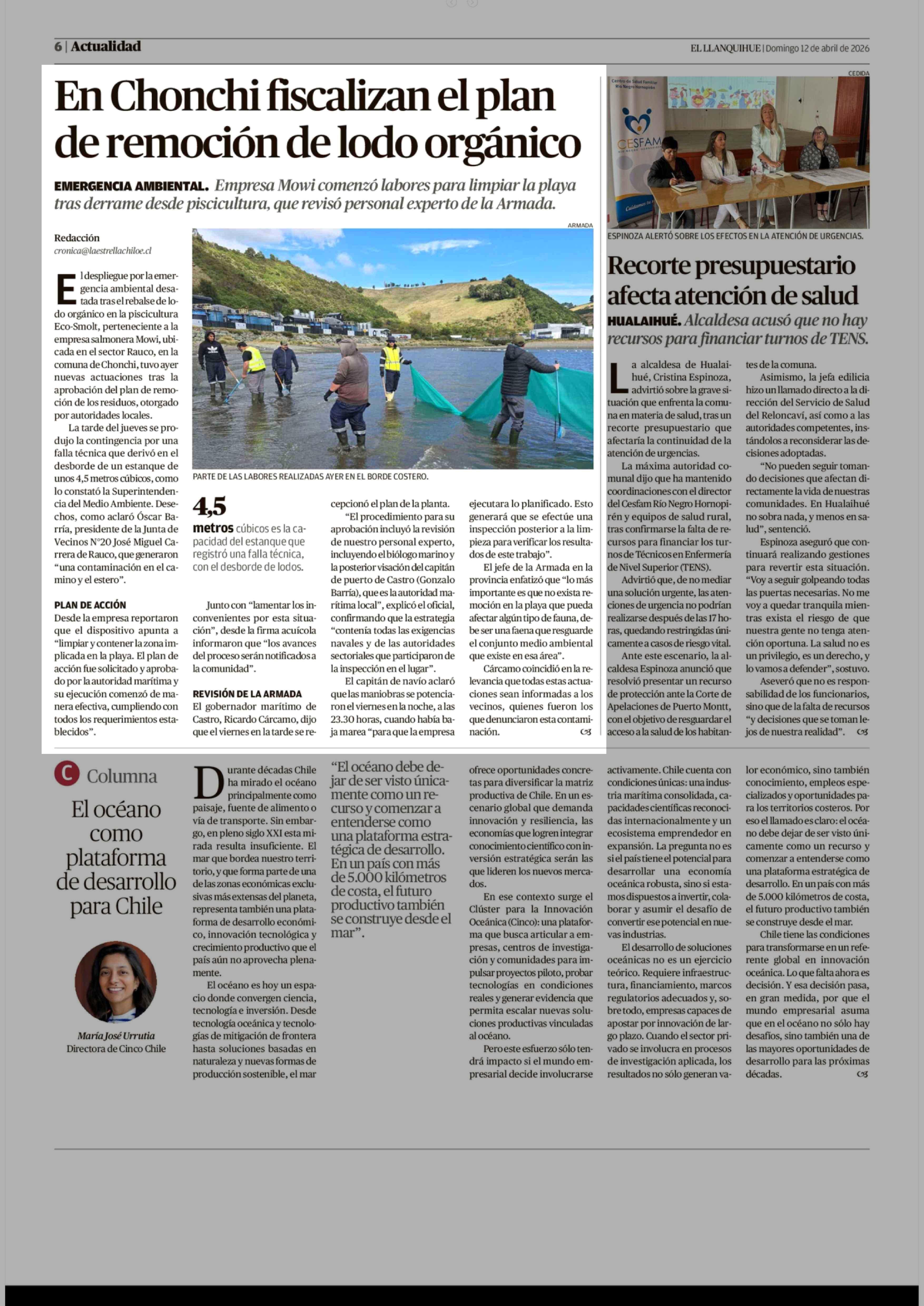 En Chonchi fiscalizan el plan de remoción de lodo orgánico 12-04-2026 El Llanquihue |