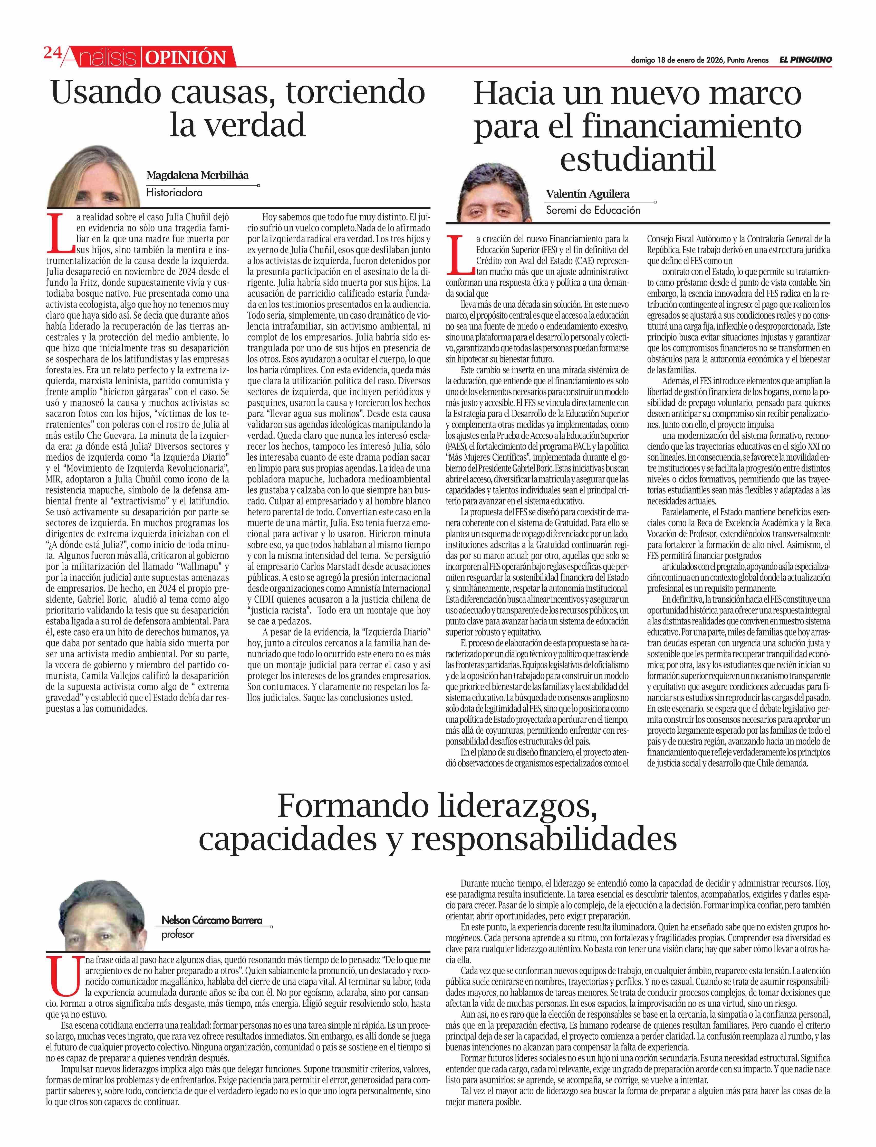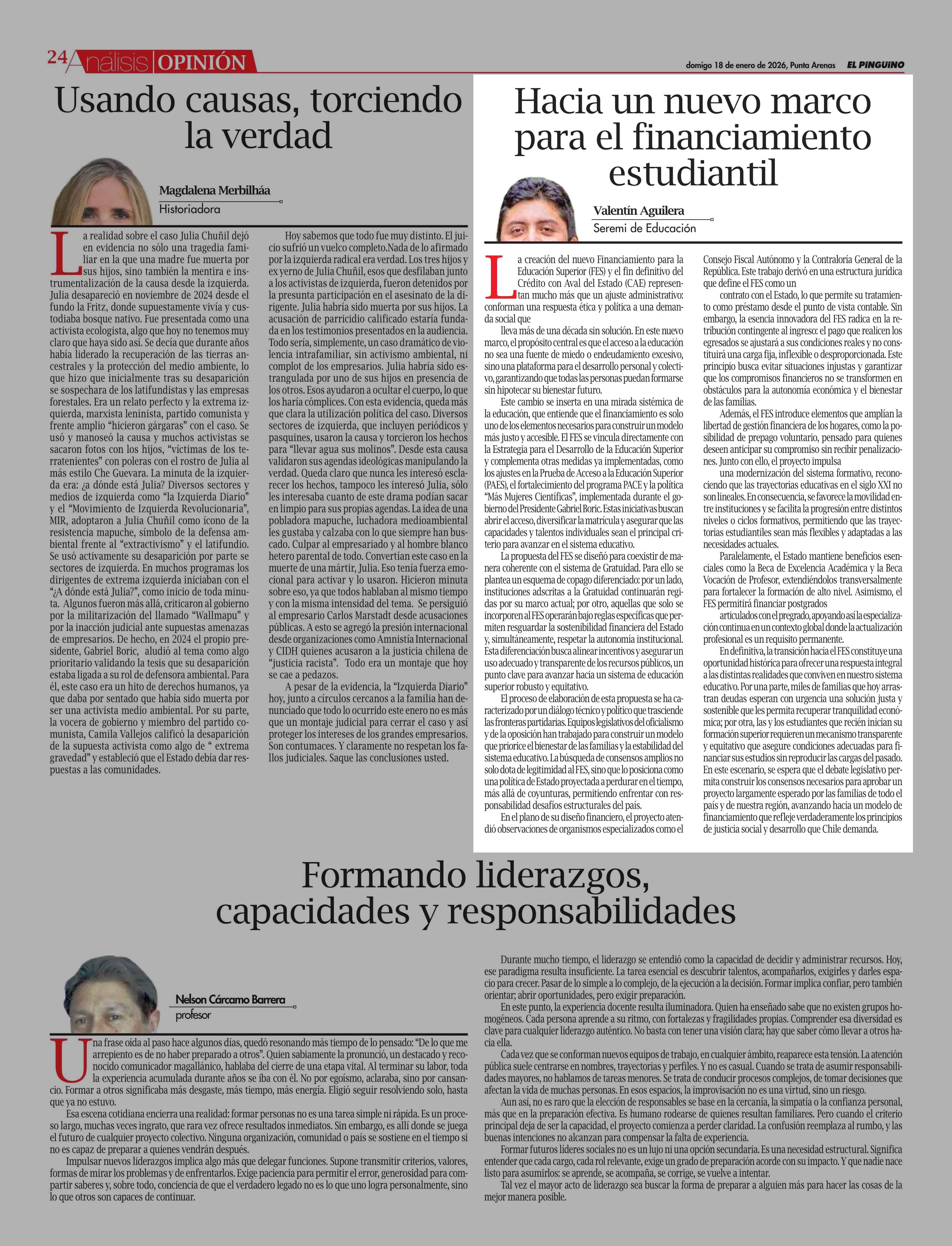 | Fecha: | 18-01-2026 | Sector: | Columnas de Opinión | Región: | Región de Magallanes y de la Antártica Chilena |