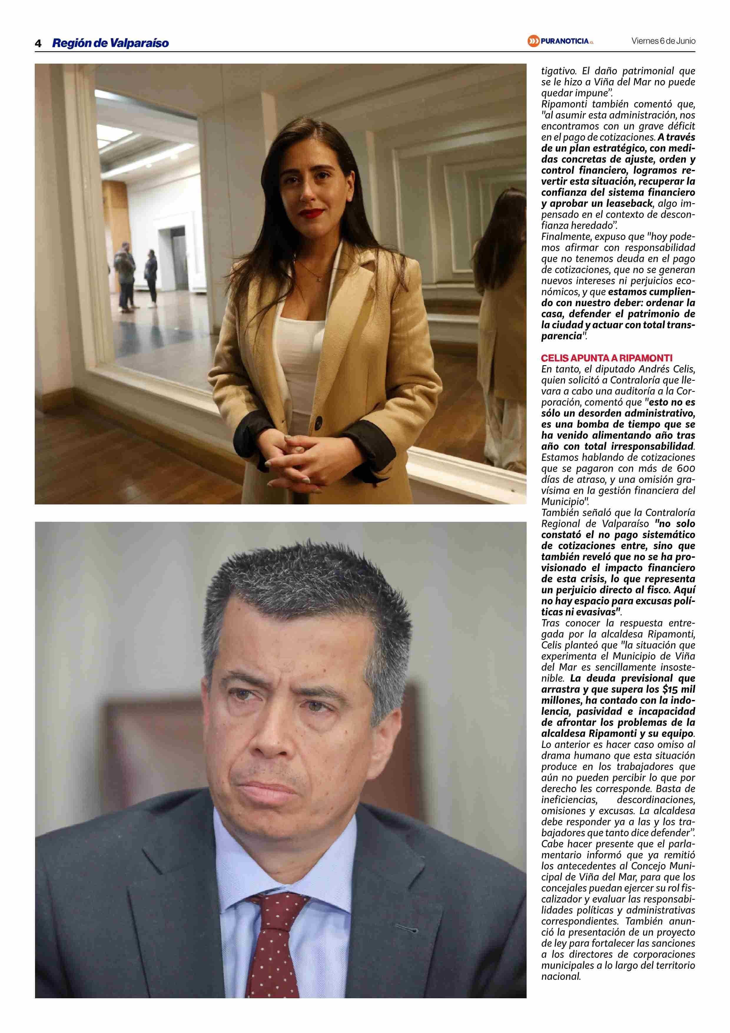 Contraloría revela grave daño patrimonial en Viña del Mar por millonaria deuda de cotizaciones originada en la era Reginato 06-06-2025 Puranoticia.cl |