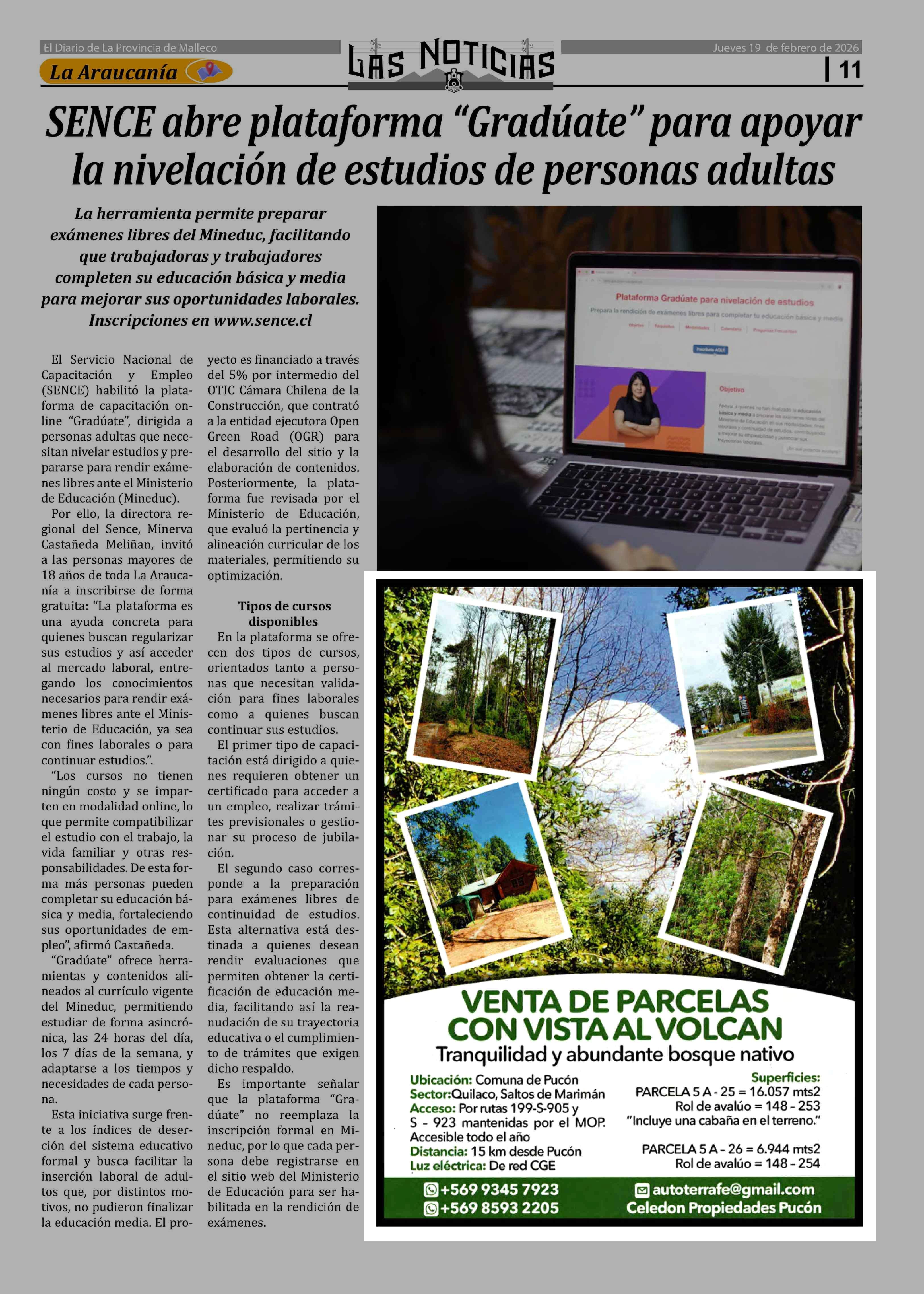Fecha: 19-02-2026 Sector: Aviso Grandes Terrenos Región: Región de la Araucanía
