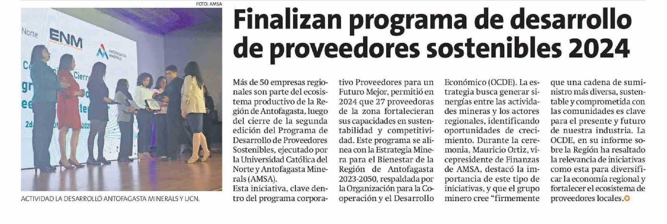 Finalizan programa de desarrollo de proveedores sostenibles 2024 12-04-2025 La Estrella de Antofagasta |