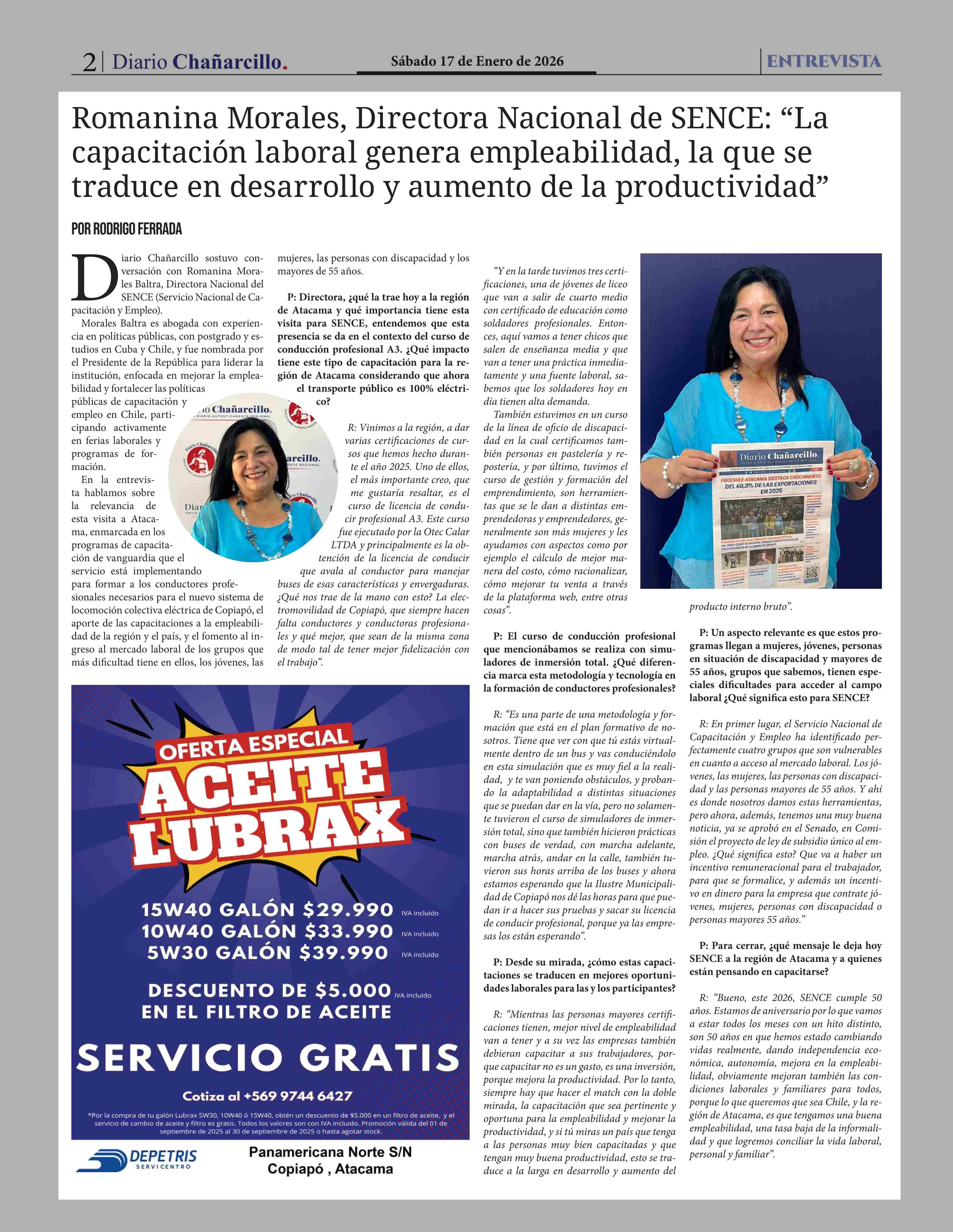 Romanina Morales, Directora Nacional de SENCE: "La capacitación laboral genera empleabilidad, la que se traduce en desarrollo y aumento de la productividad" 17-01-2026 Diario Chañarcillo |