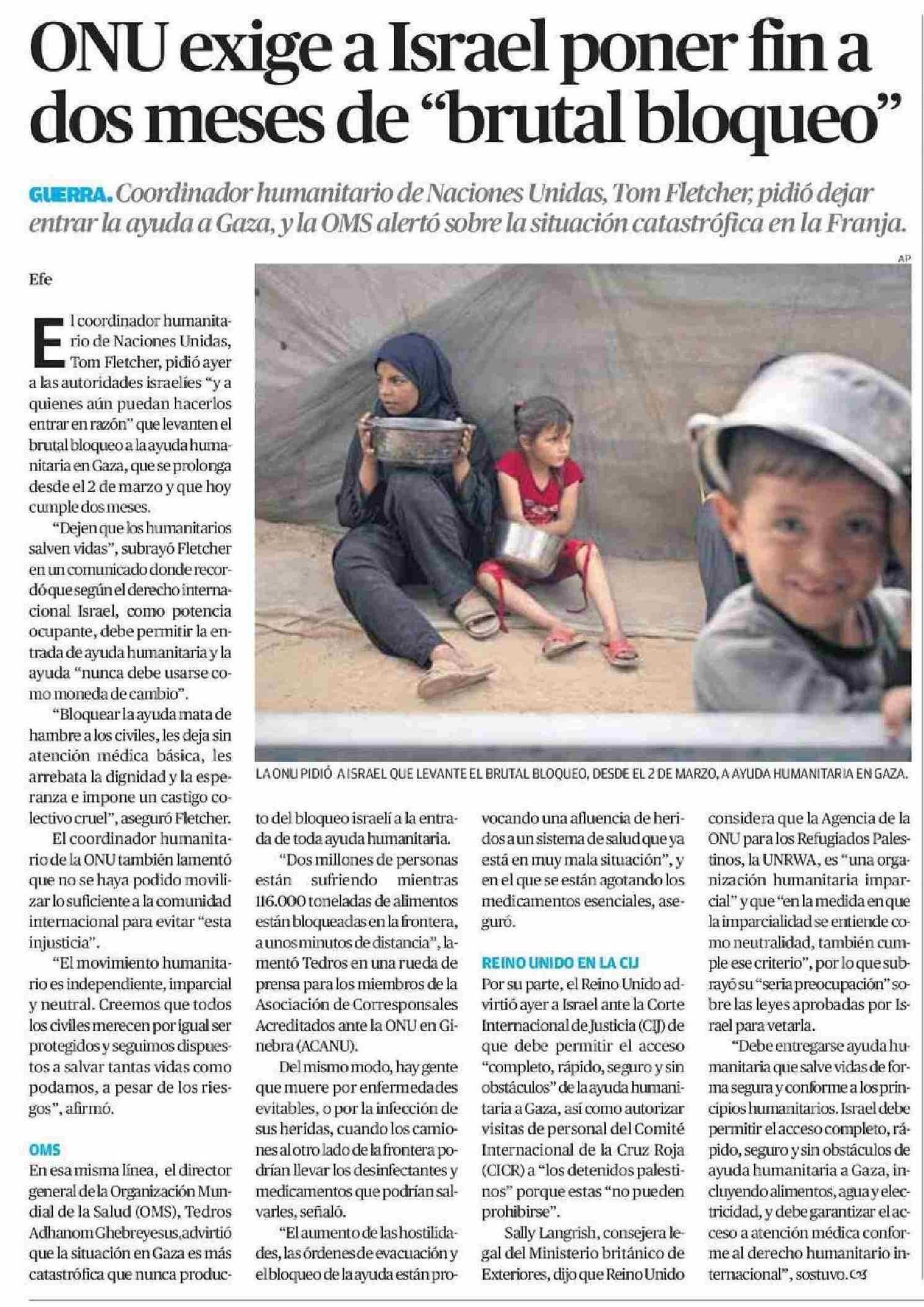 Título: ONU exige a Israel poner fin a dos meses de “brutal bloqueo”