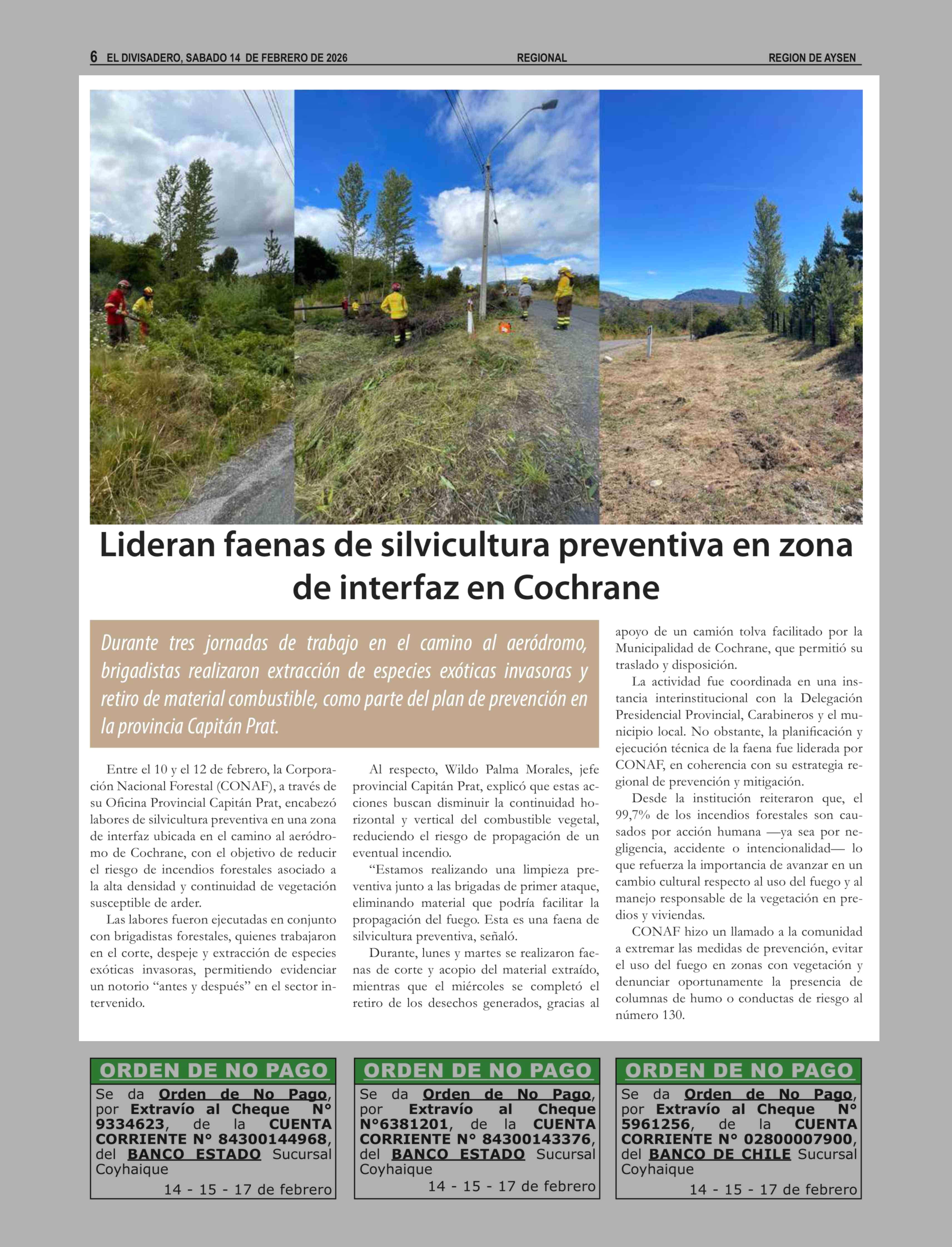| Fecha: | 14-02-2026 | Sector: | Noticia general | Región: | Región Aysén del General Carlos Ibáñez del Campo |