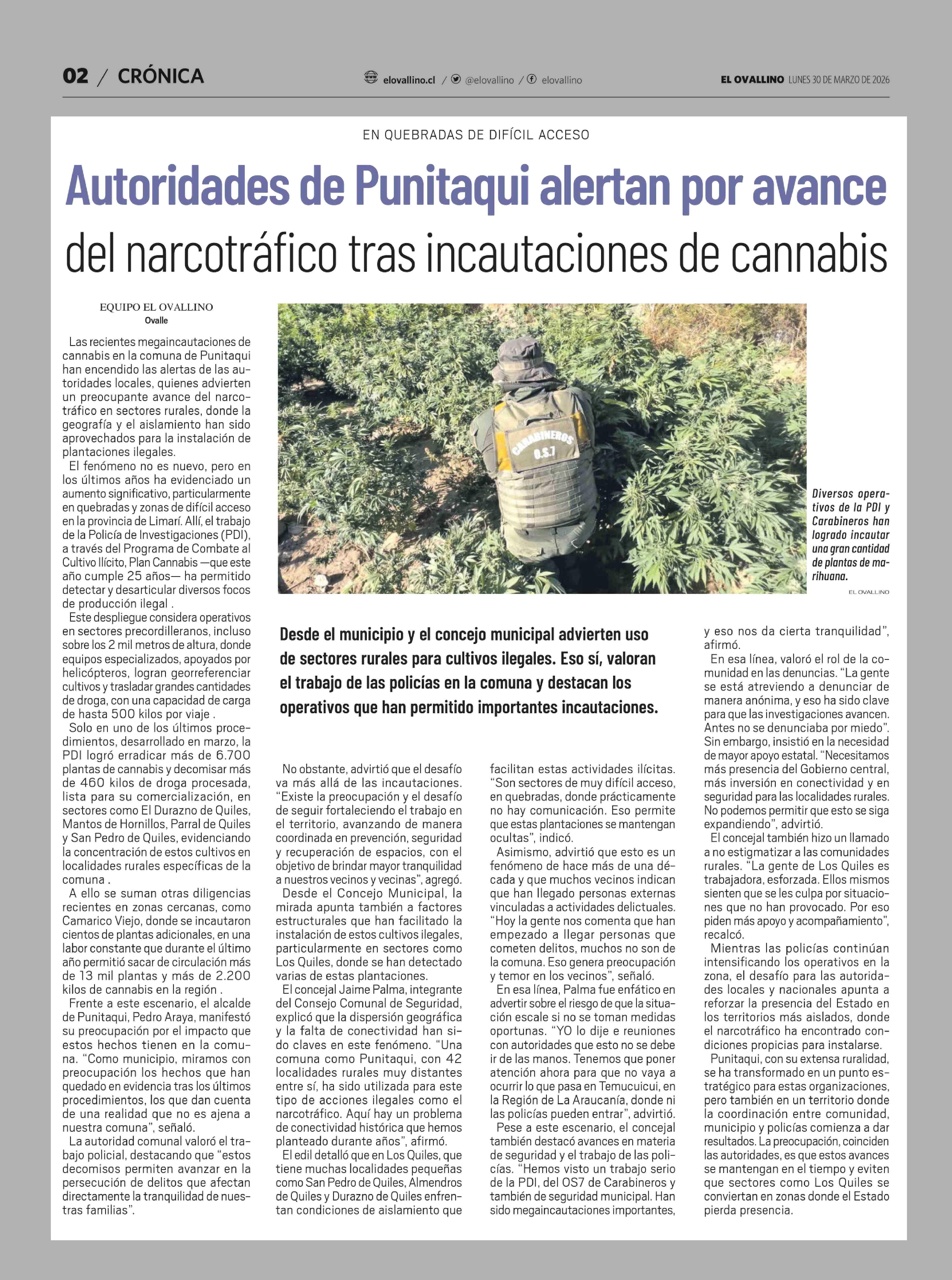 Título: Autoridades de Punitaqui alertan por avance del narcotráfico tras incautaciones de cannabis