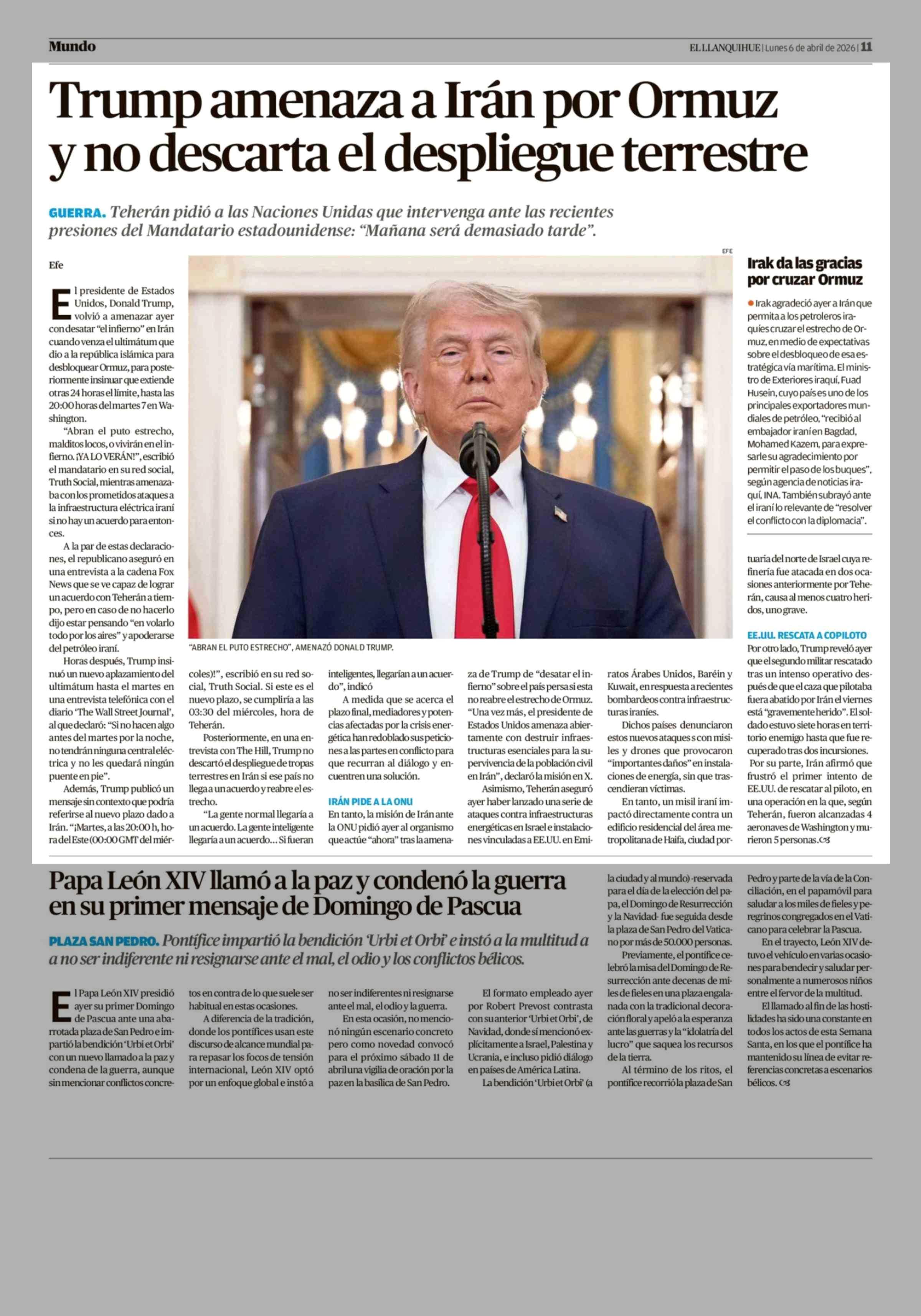 Título: Trump amenaza a Irán por Ormuz y no descarta el despliegue terrestre