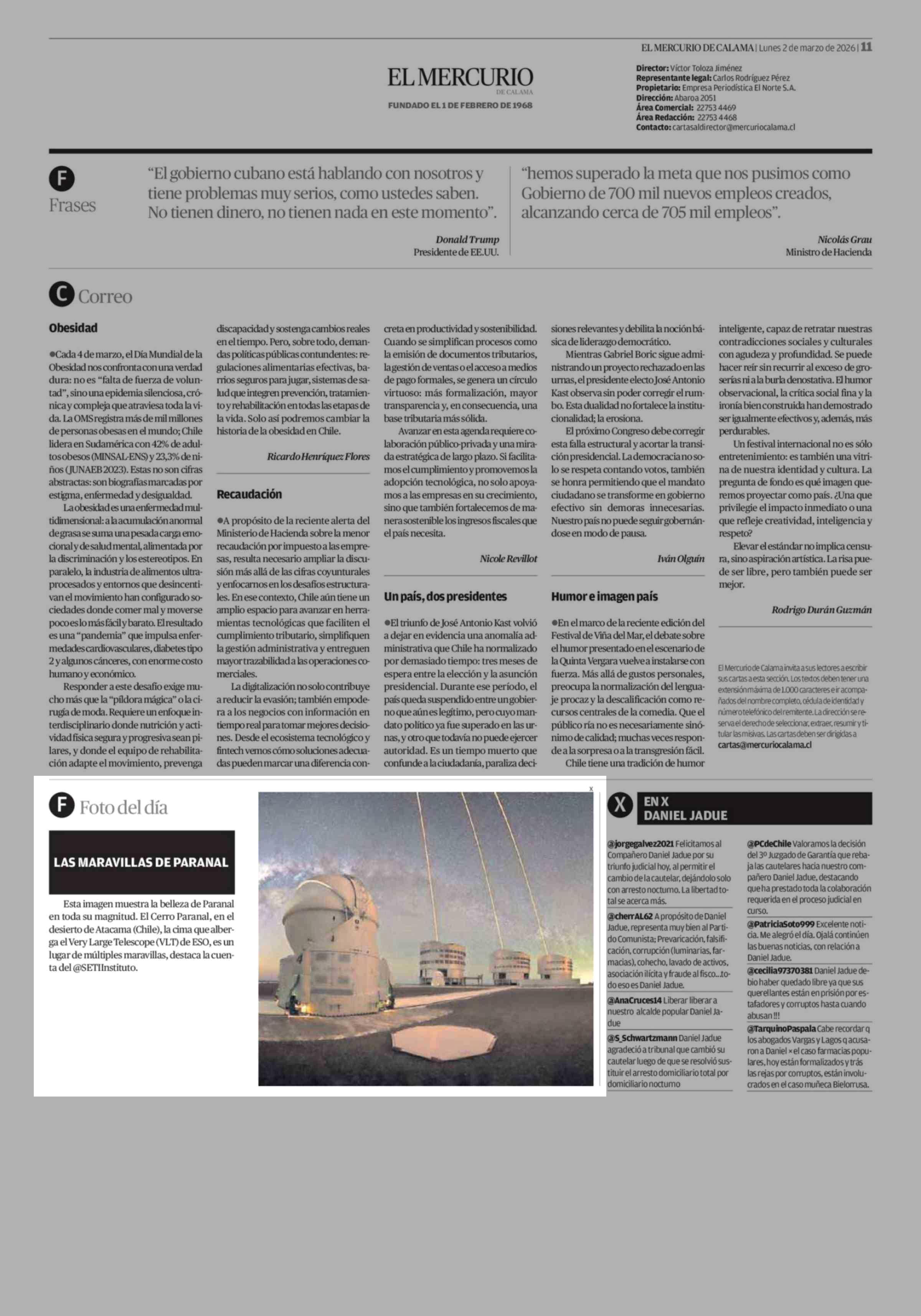 F Foto del día 02-03-2026 El Mercurio de Calama |