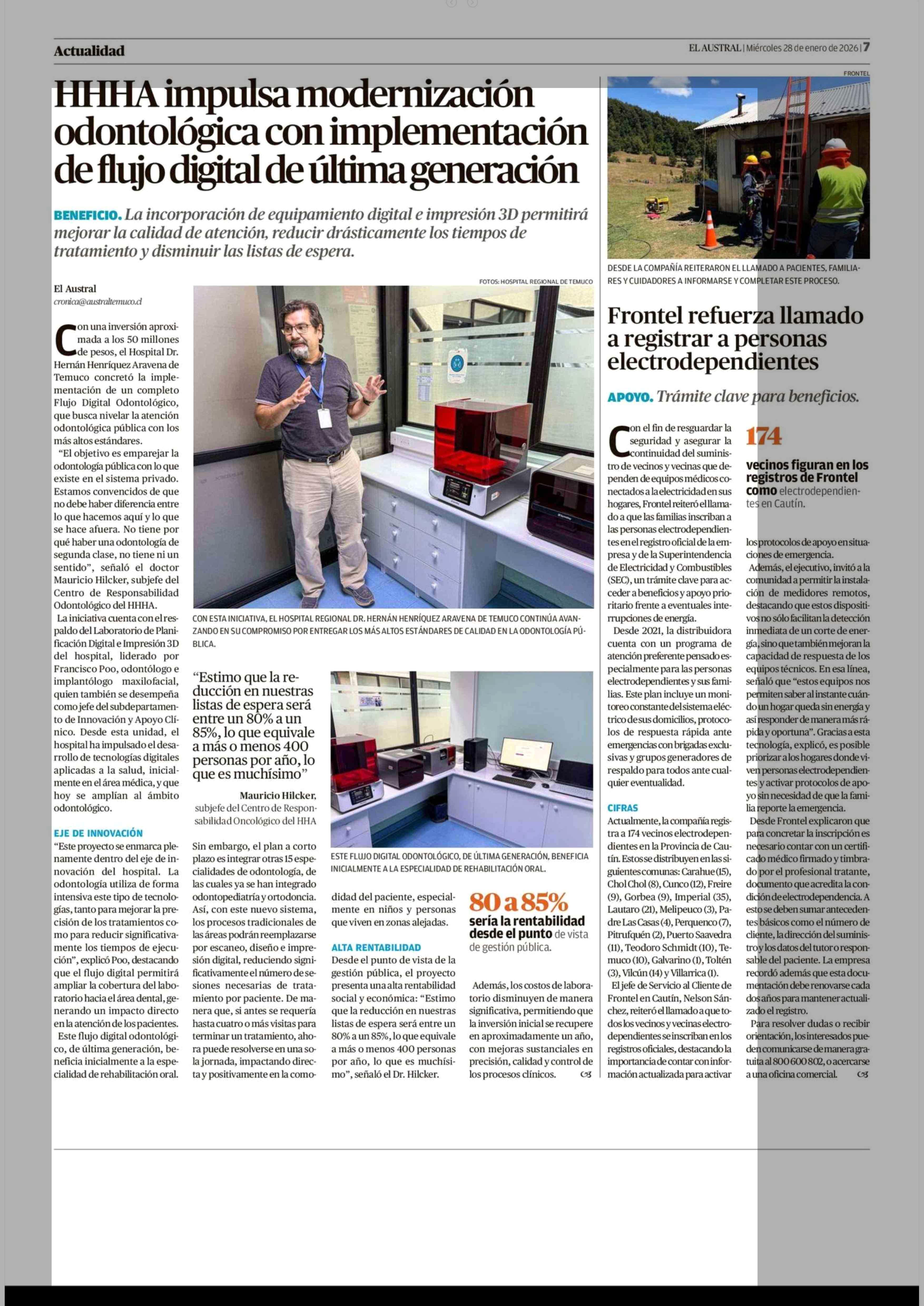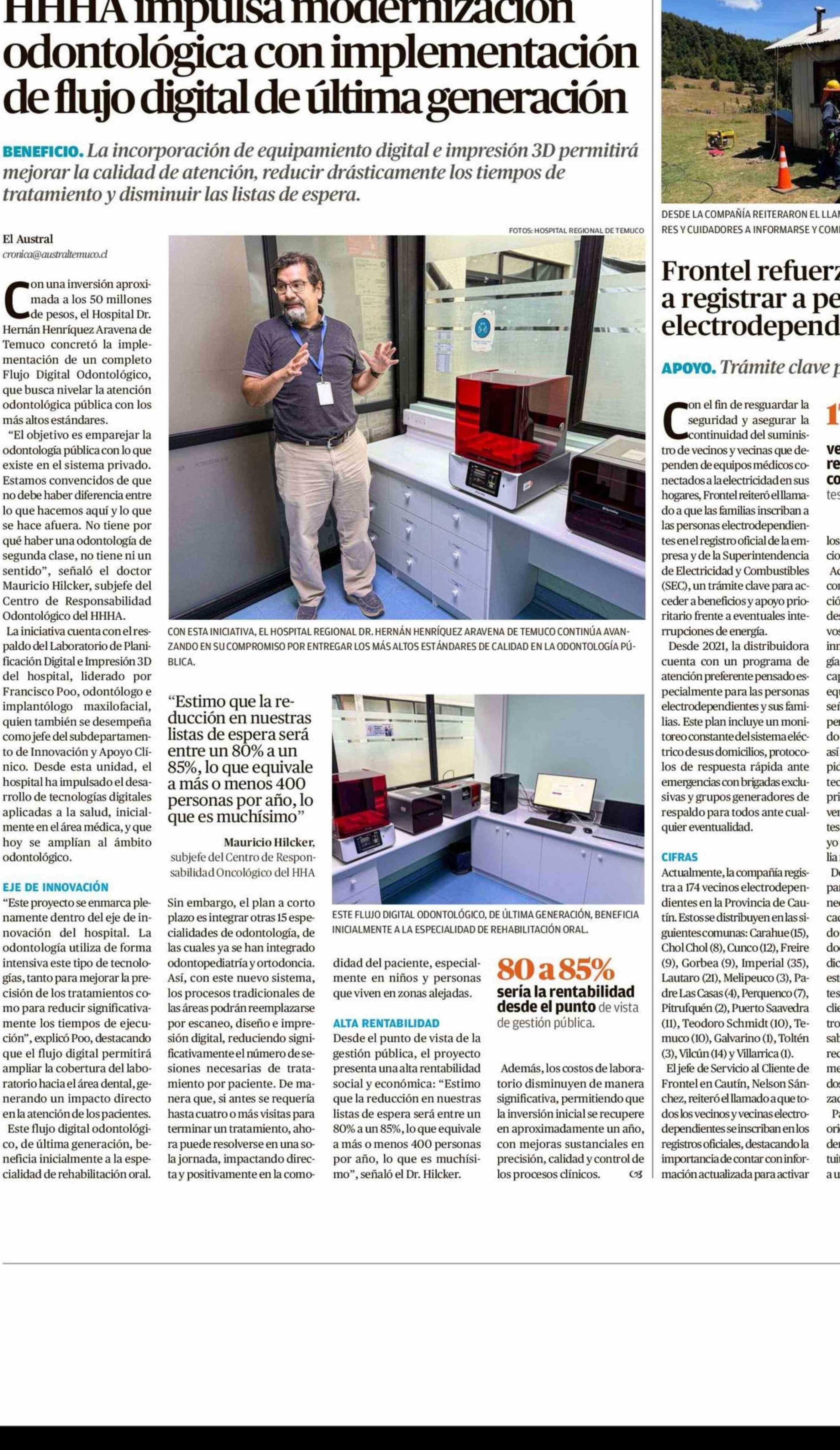 HHHA impulsa modernización odontológica con implementación de flujo digital de última generación 28-01-2026 El Austral de la Araucanía |