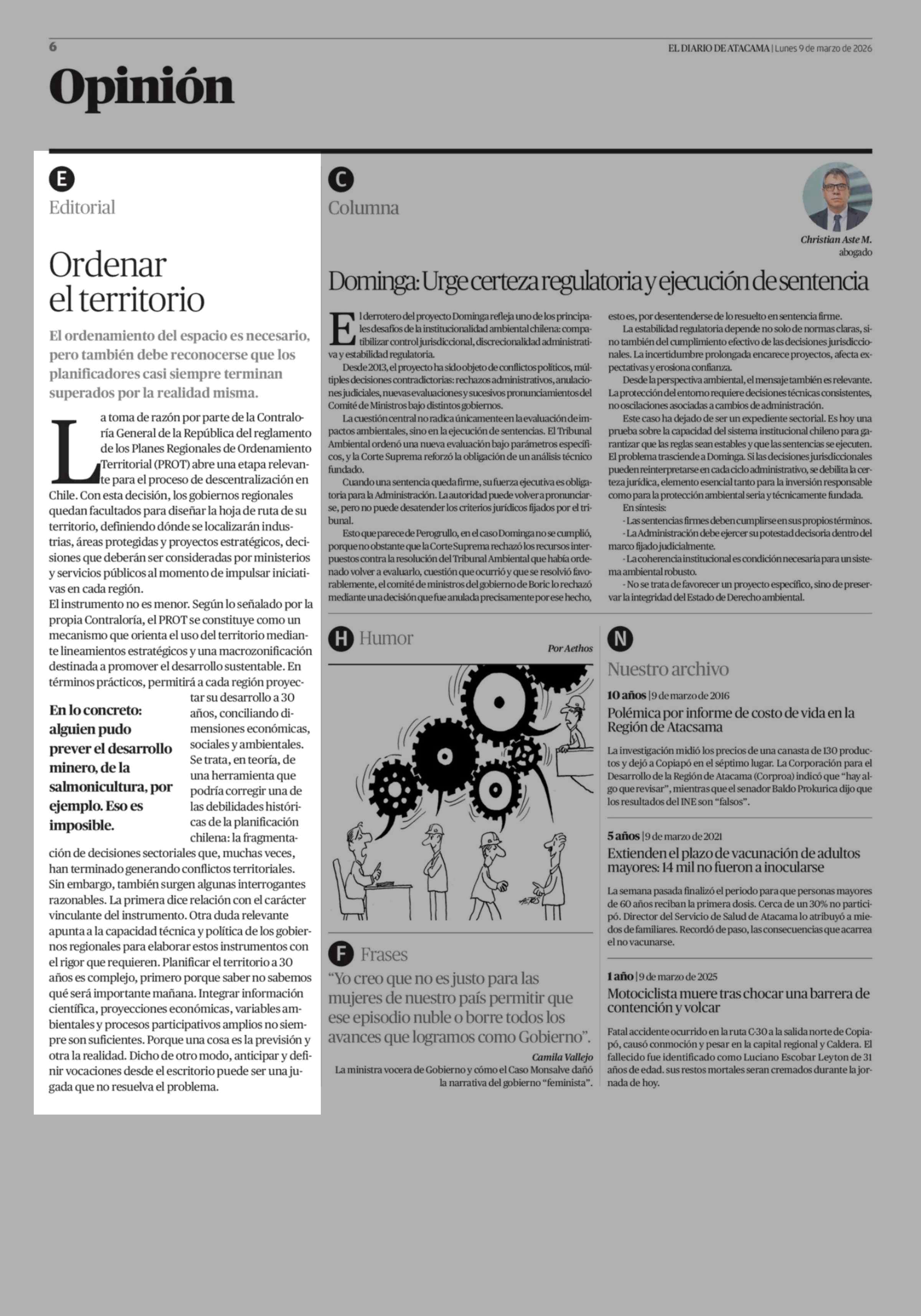 Fecha: 09-03-2026 Sector: Editorial Región: Región de Atacama