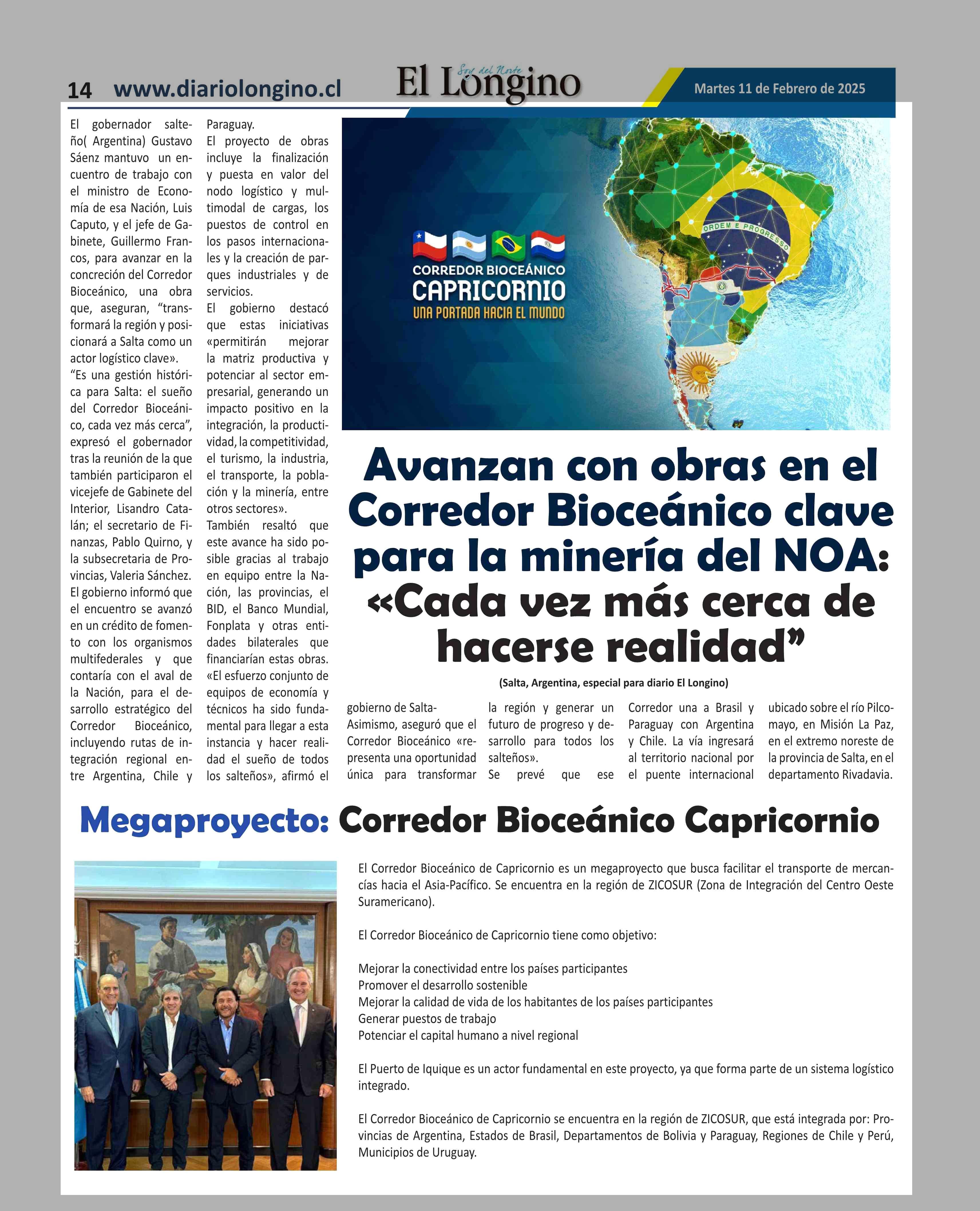 Avanzan con obras en el Corredor Bioceánico clave para la minería del NOA: «Cada vez más cerca de hacerse realidad” 11-02-2025 El Longino |
