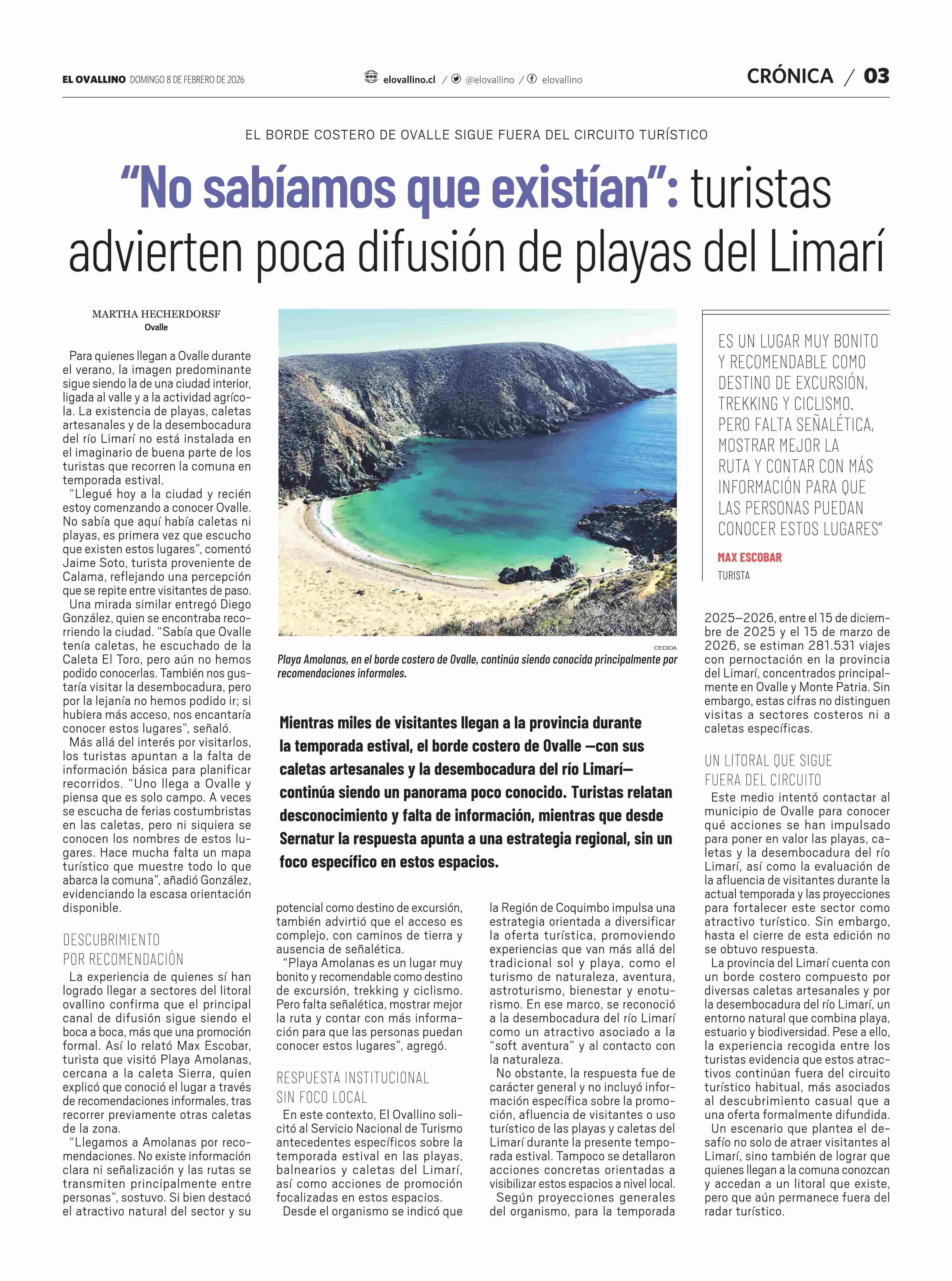 "No sabíamos que existían": turistas advierten poca difusión de playas del Limarí 08-02-2026 El Ovallino |