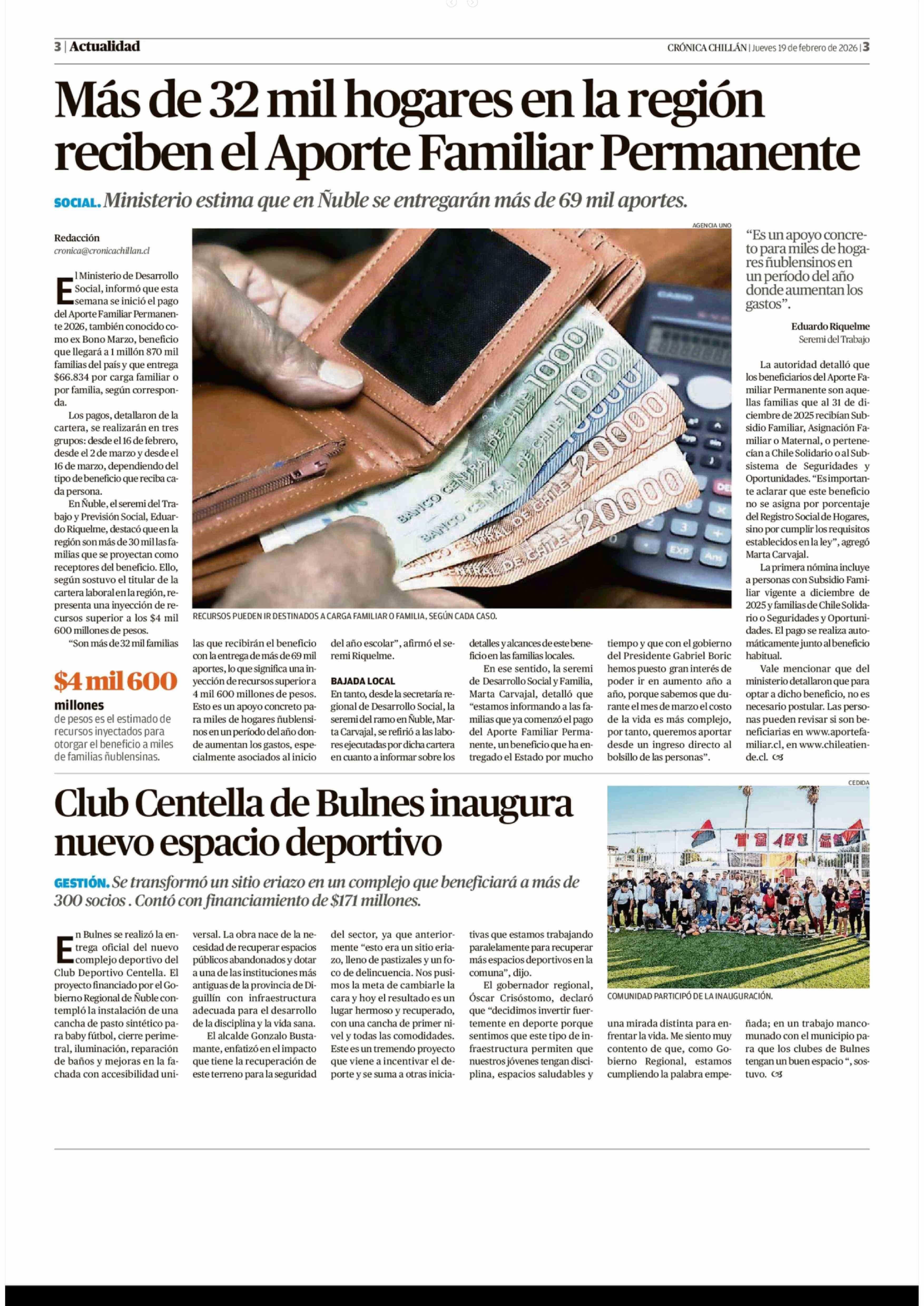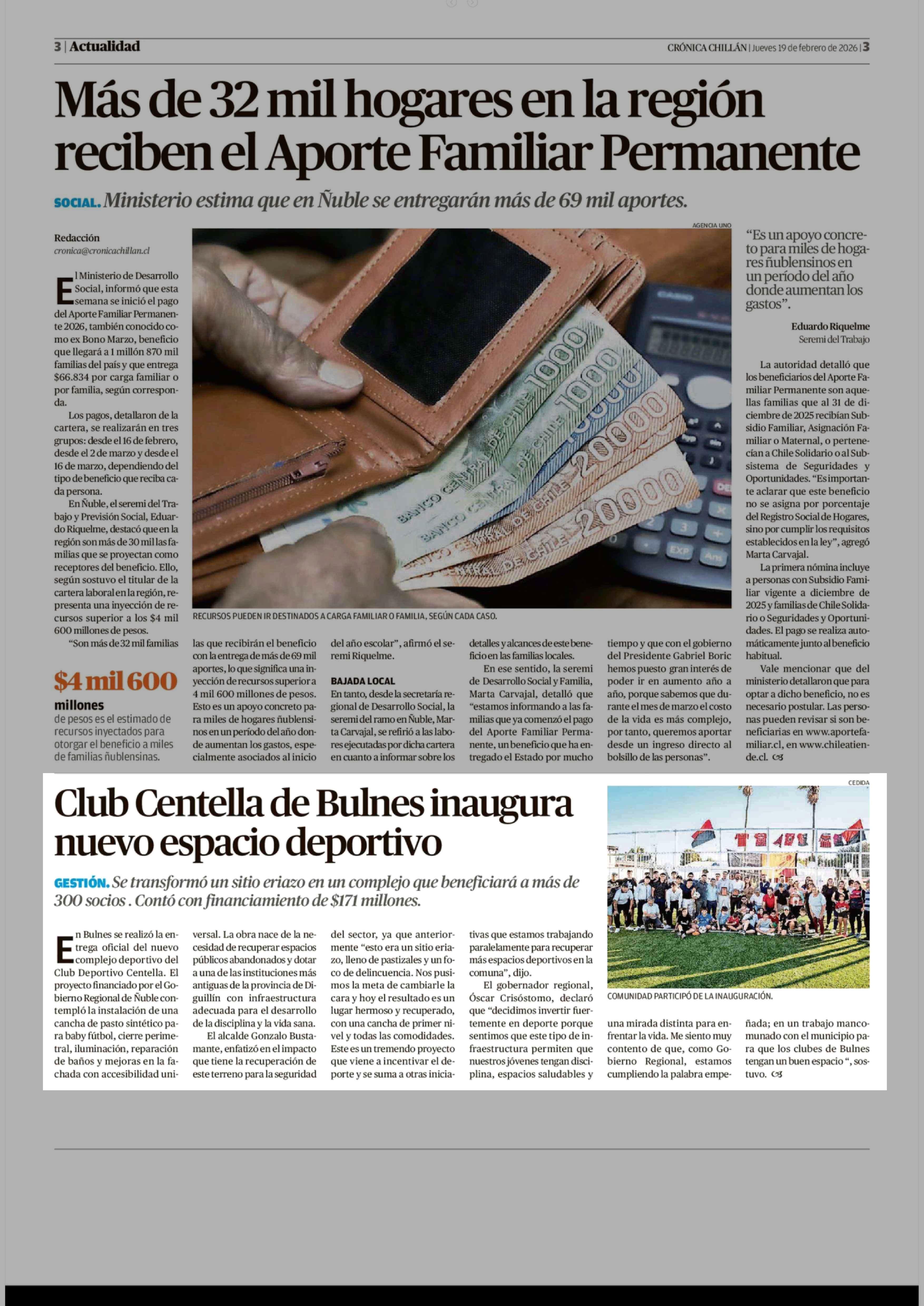 | Fecha: | 19-02-2026 | Sector: | Noticia general | Región: | Región del Ñuble |