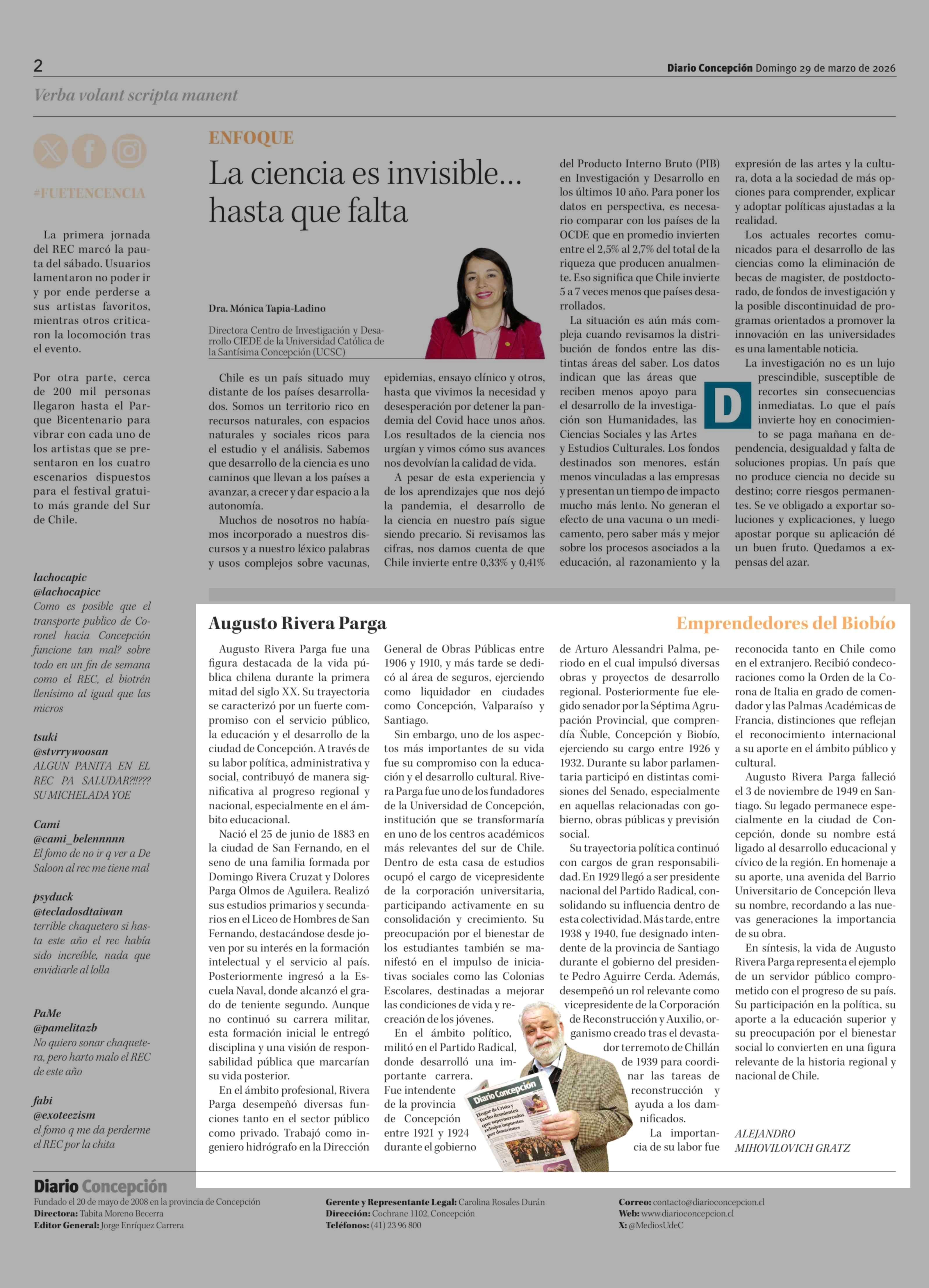 Fuente: Diario Concepción (Diario Concepción) Página(s): 2