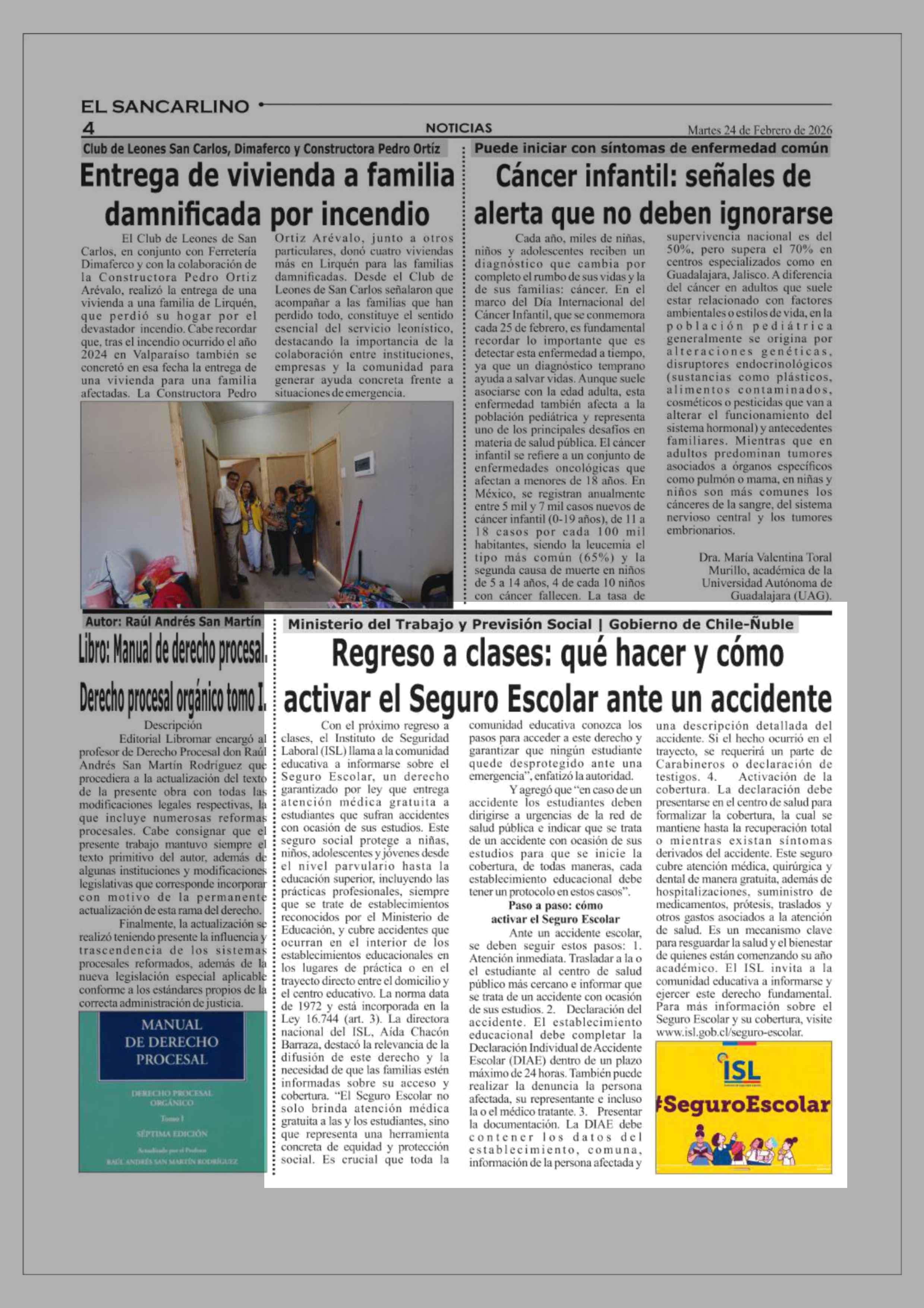 Ministerio del Trabajo y Previsión Social | Gobierno de Chile-Ñuble Regreso a clases: qué hacer y cómo activar el Seguro Escolar ante un accidente 24-02-2026 El Sancarlino |