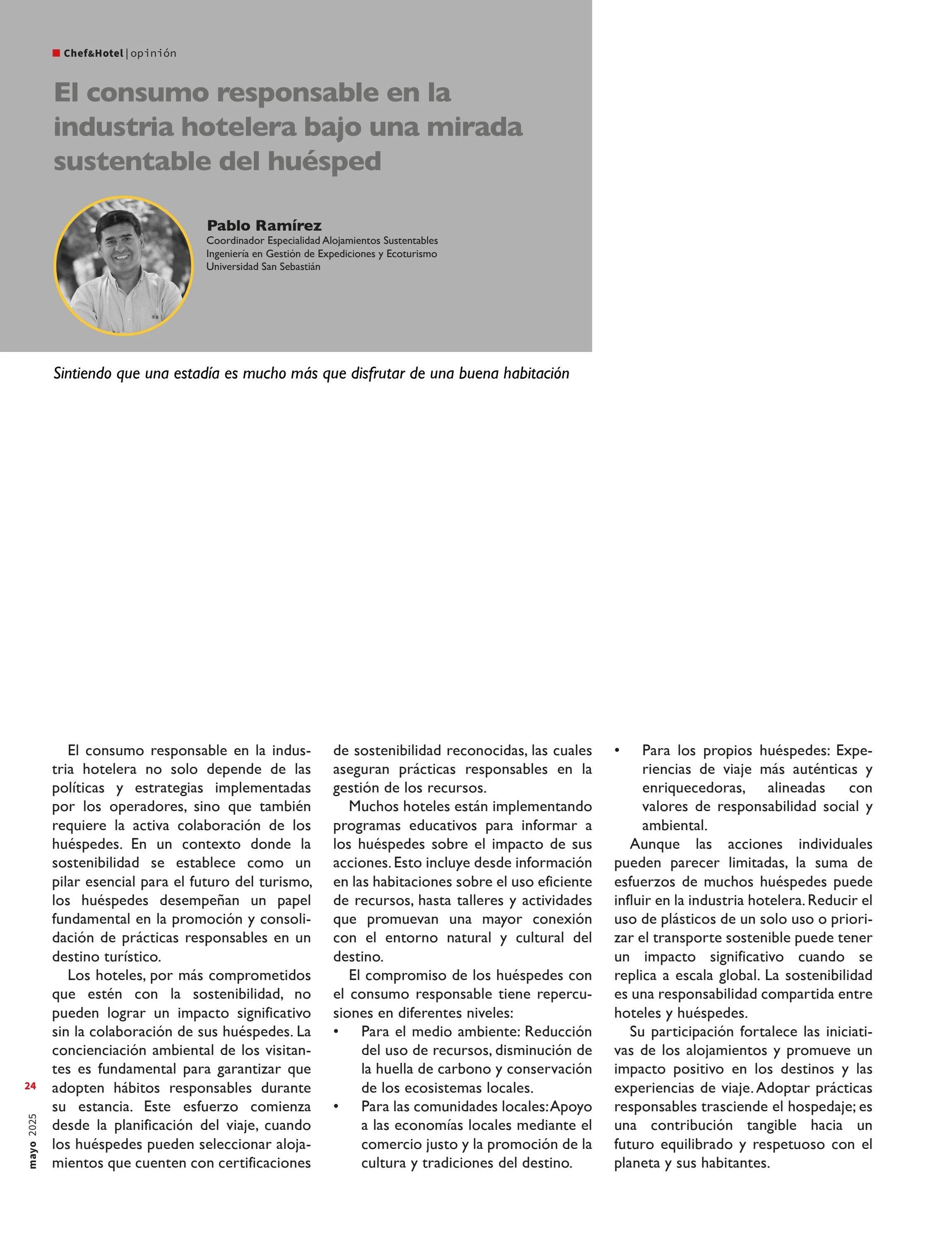 El consumo responsable en la industria hotelera bajo una mirada sustentable del huésped 30-05-2025 Revista Chef & Hotel |