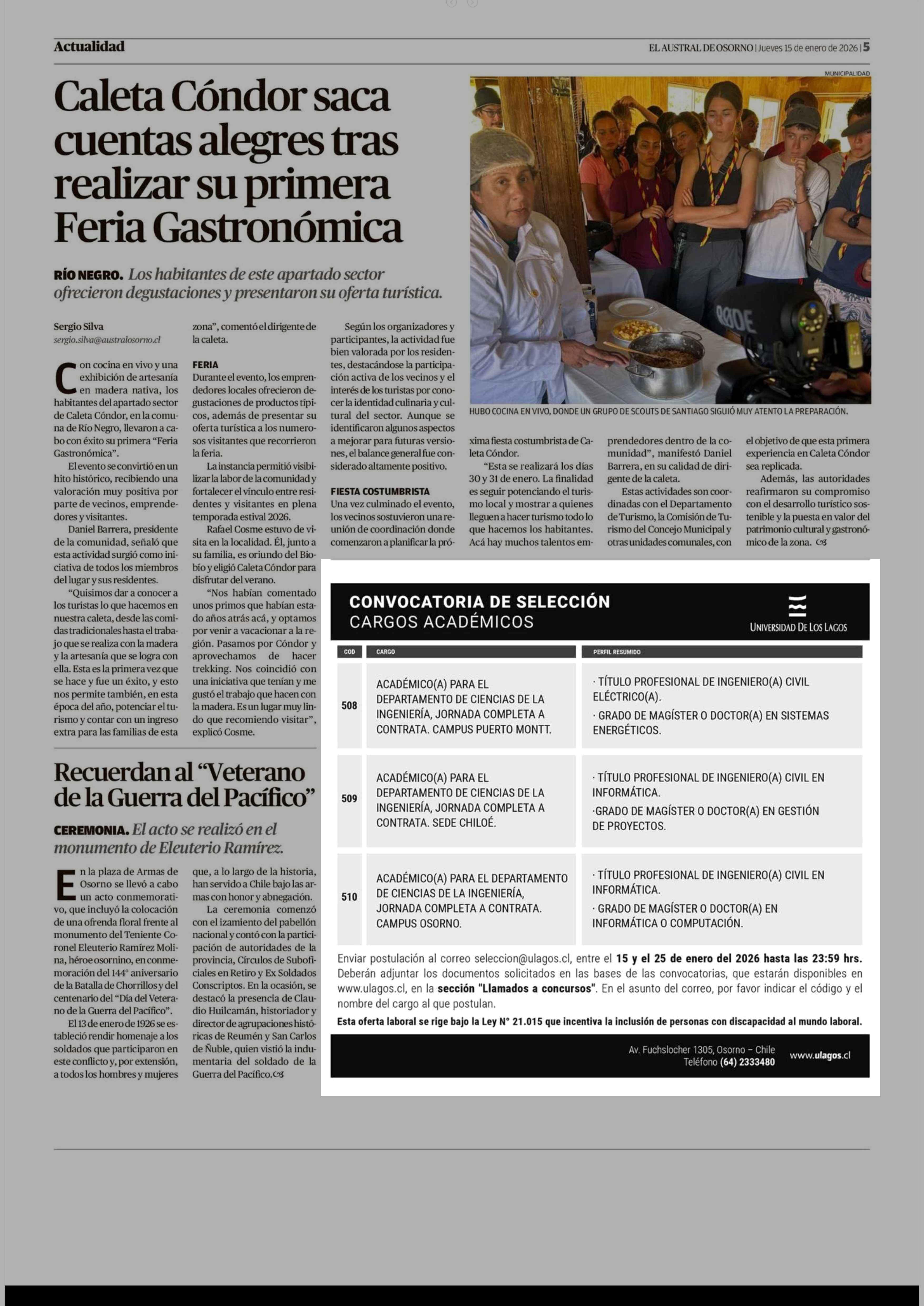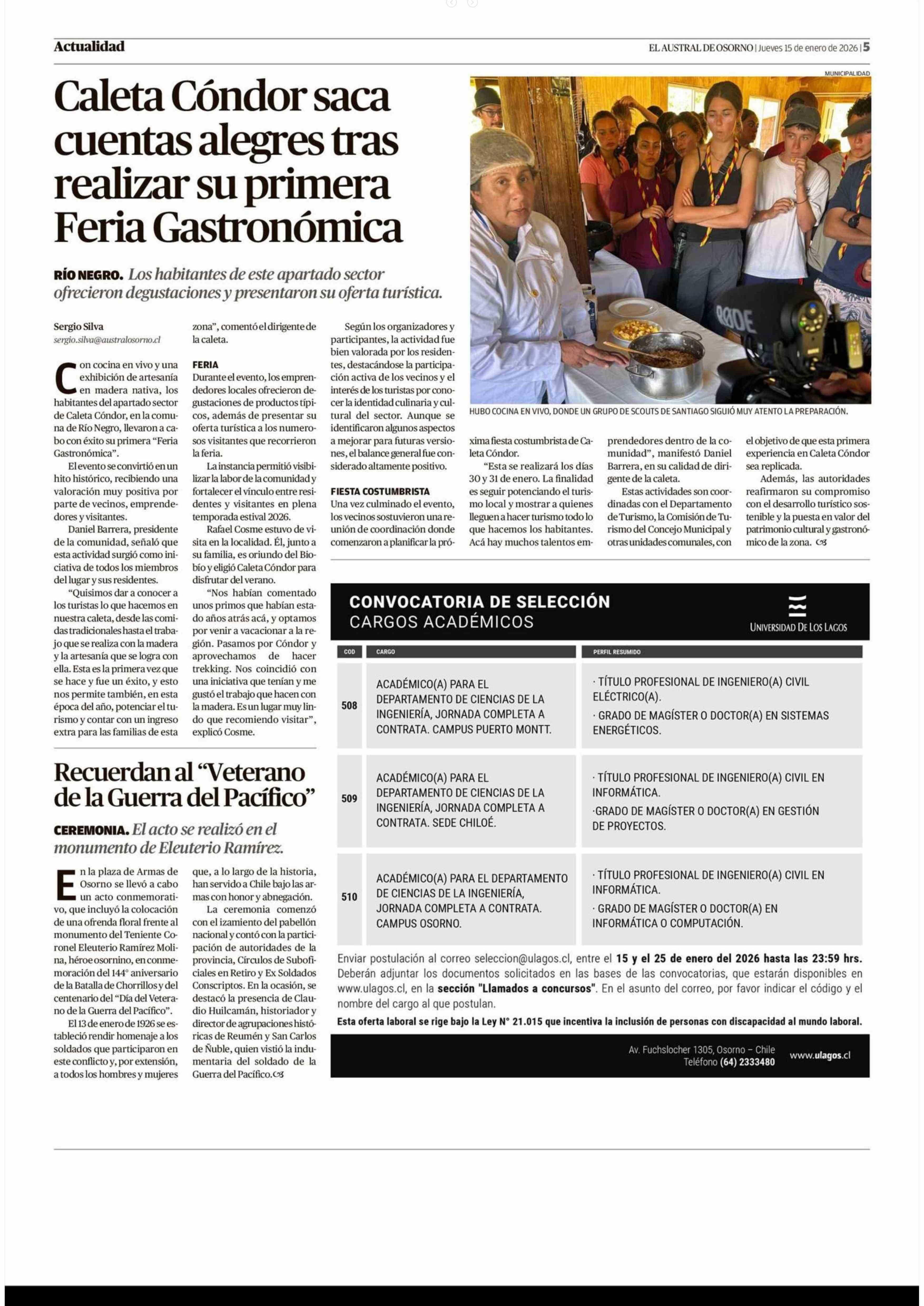 Extractos: CONVOCATORIA DE SELECCIÓN CARGOS ACADÉMICOS 15-01-2026 El Austral de Osorno |