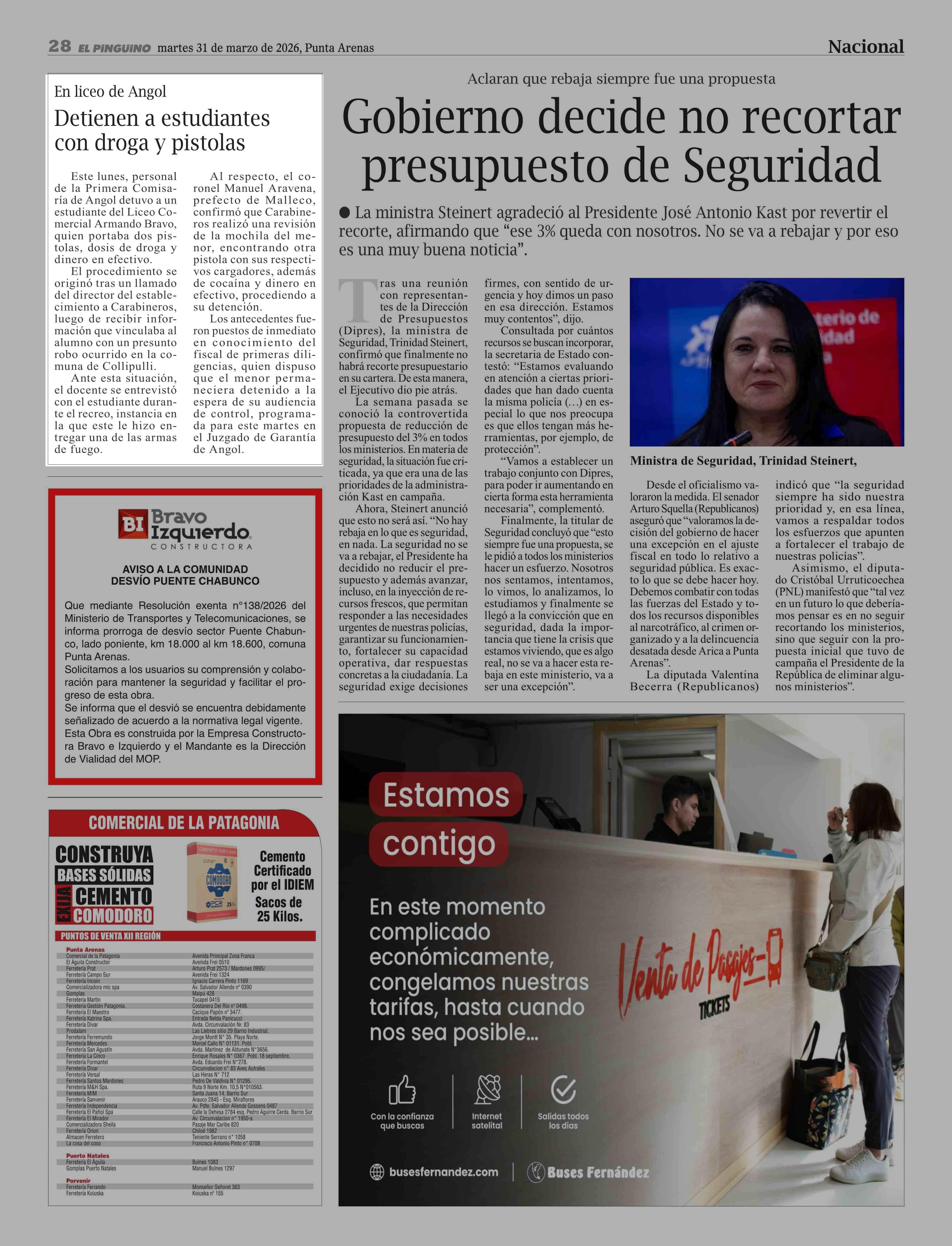 | Fecha: | 31-03-2026 | Sector: | Noticia general | Región: | Región de Magallanes y de la Antártica Chilena |
