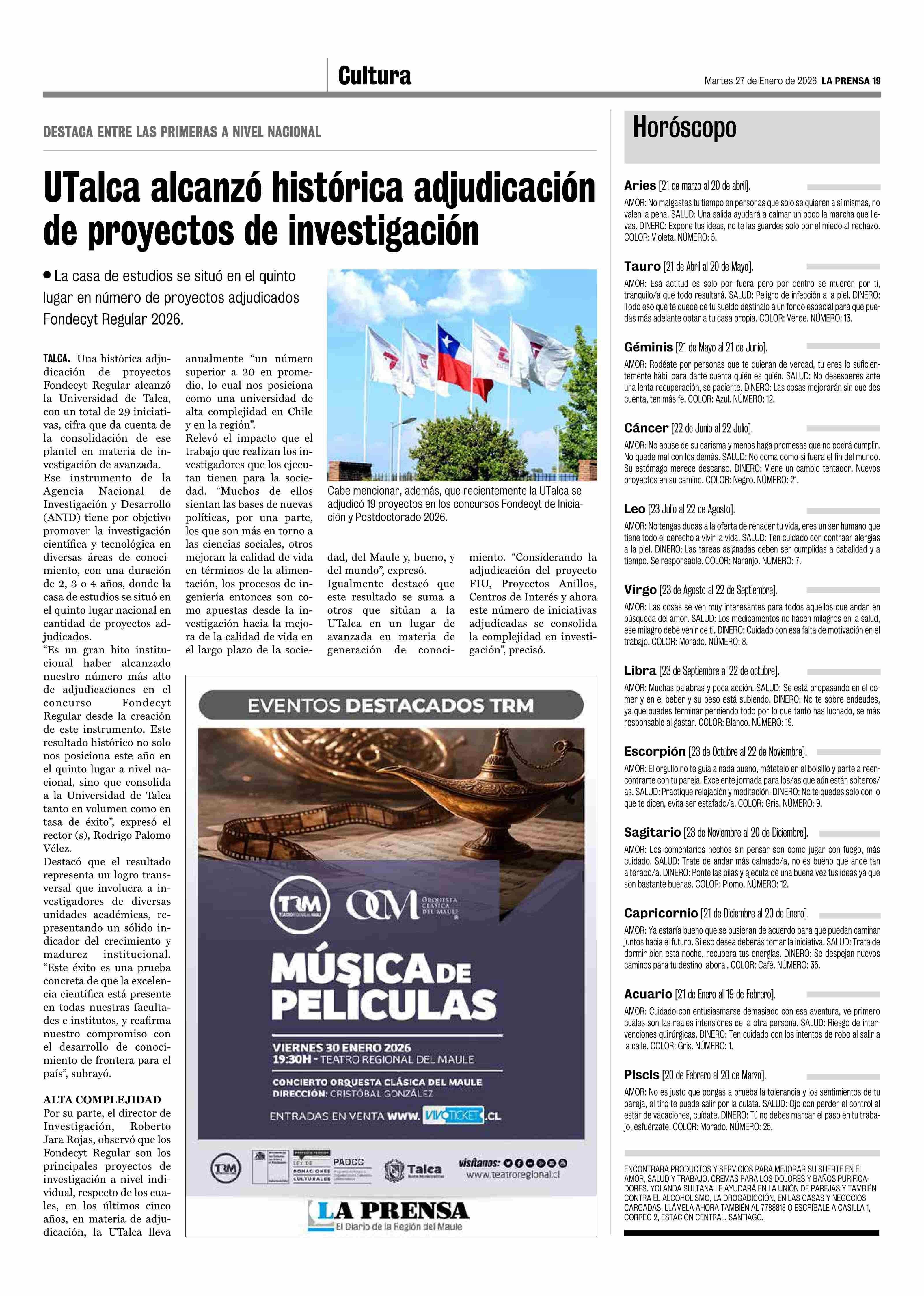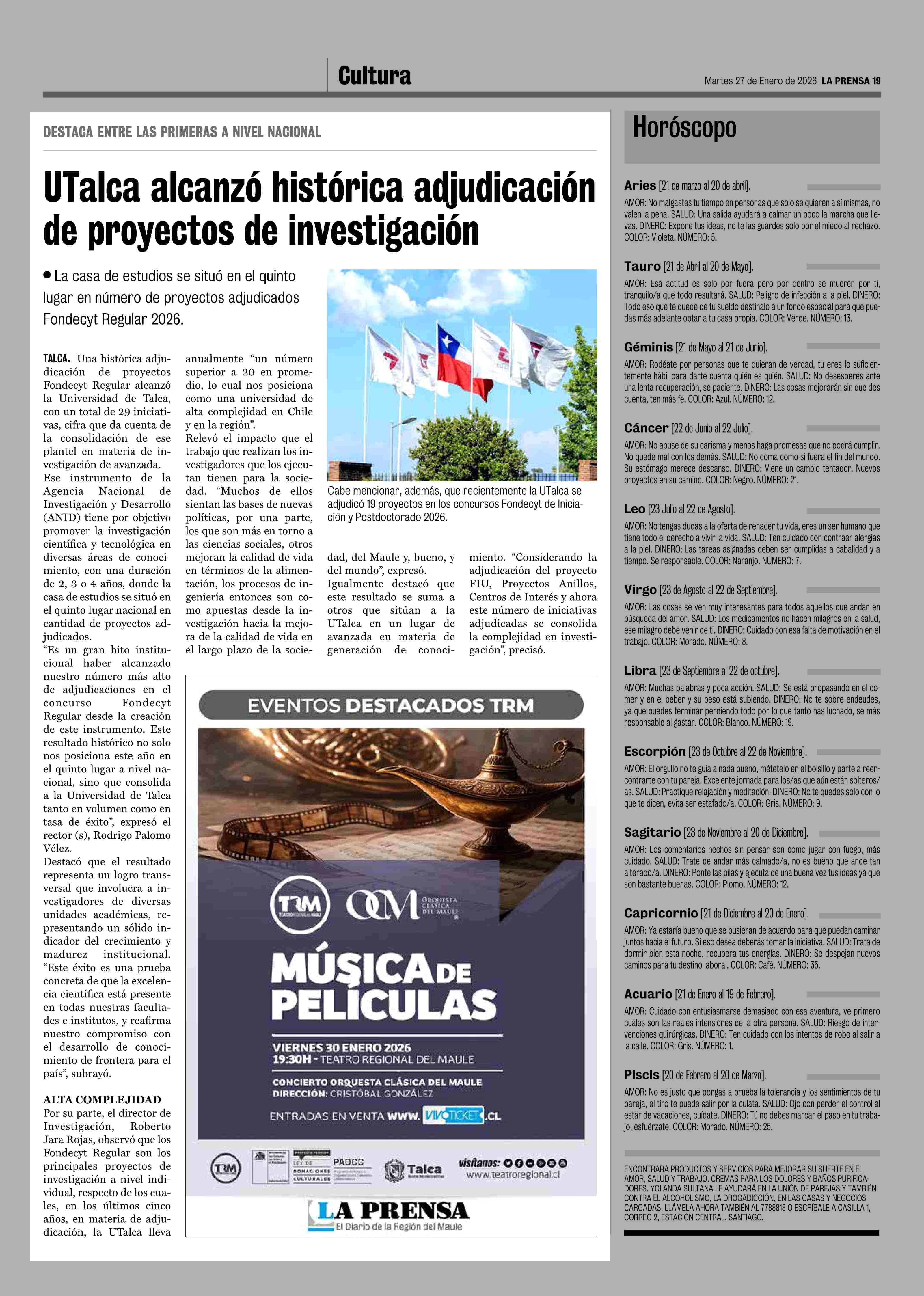 Fecha: 27-01-2026 Sector: Noticia general Región: Región del Maule