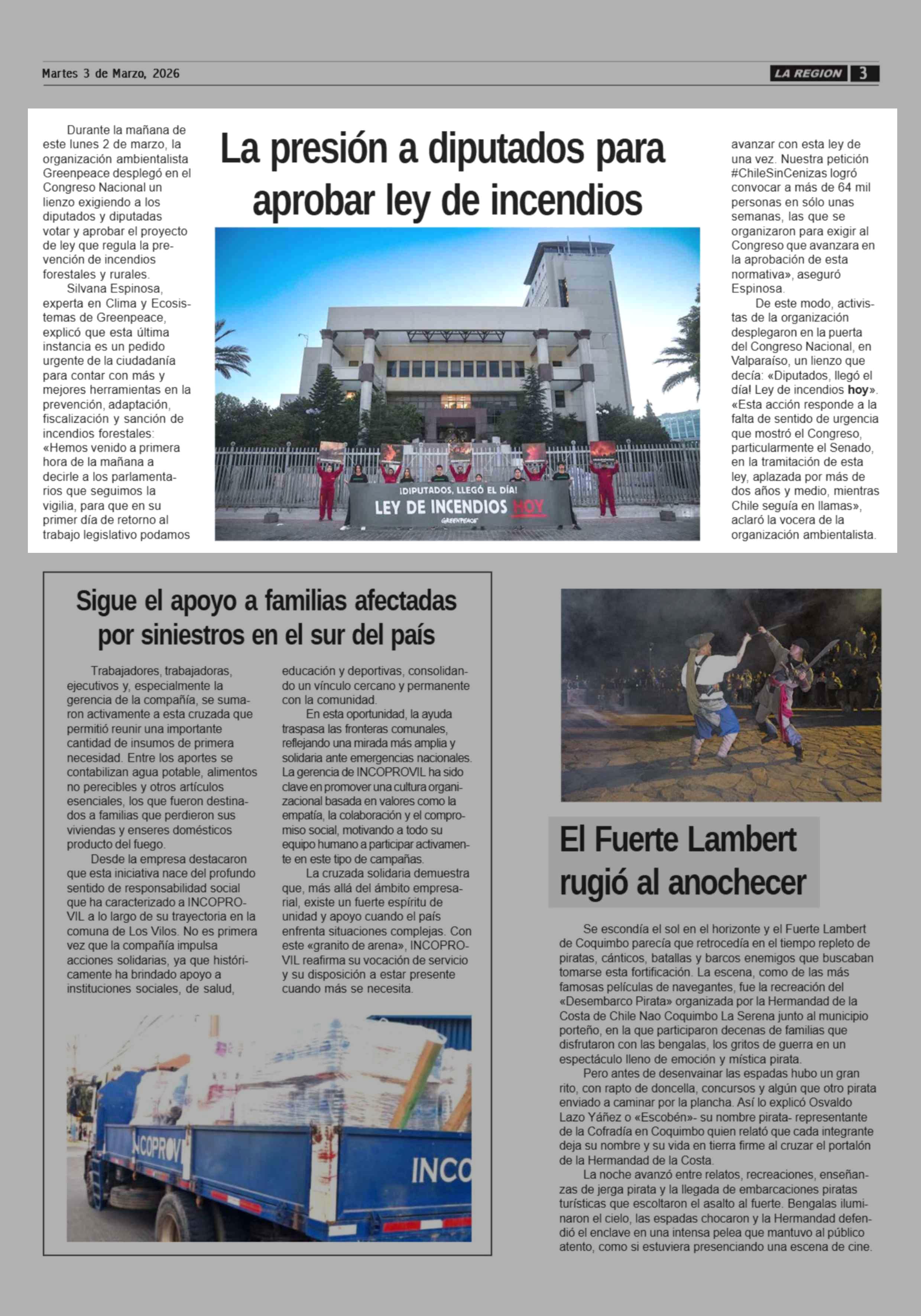La presión a diputados para aprobar ley de incendios 03-03-2026 Diario la Región |