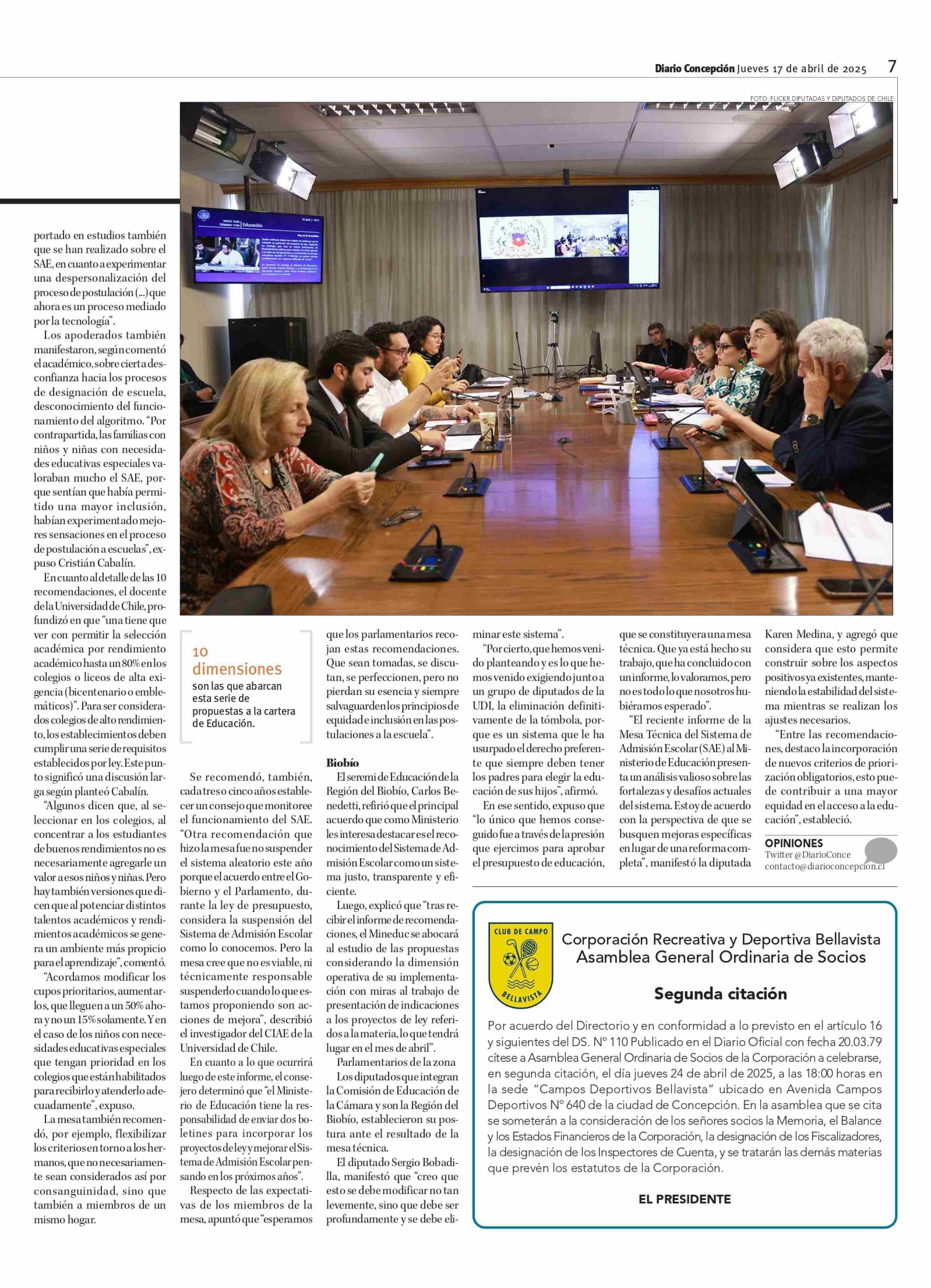 Debate generan recomendaciones de expertos de la Mesa Técnica sobre Sistema de Admisión Escolar 17-04-2025 Diario Concepción |