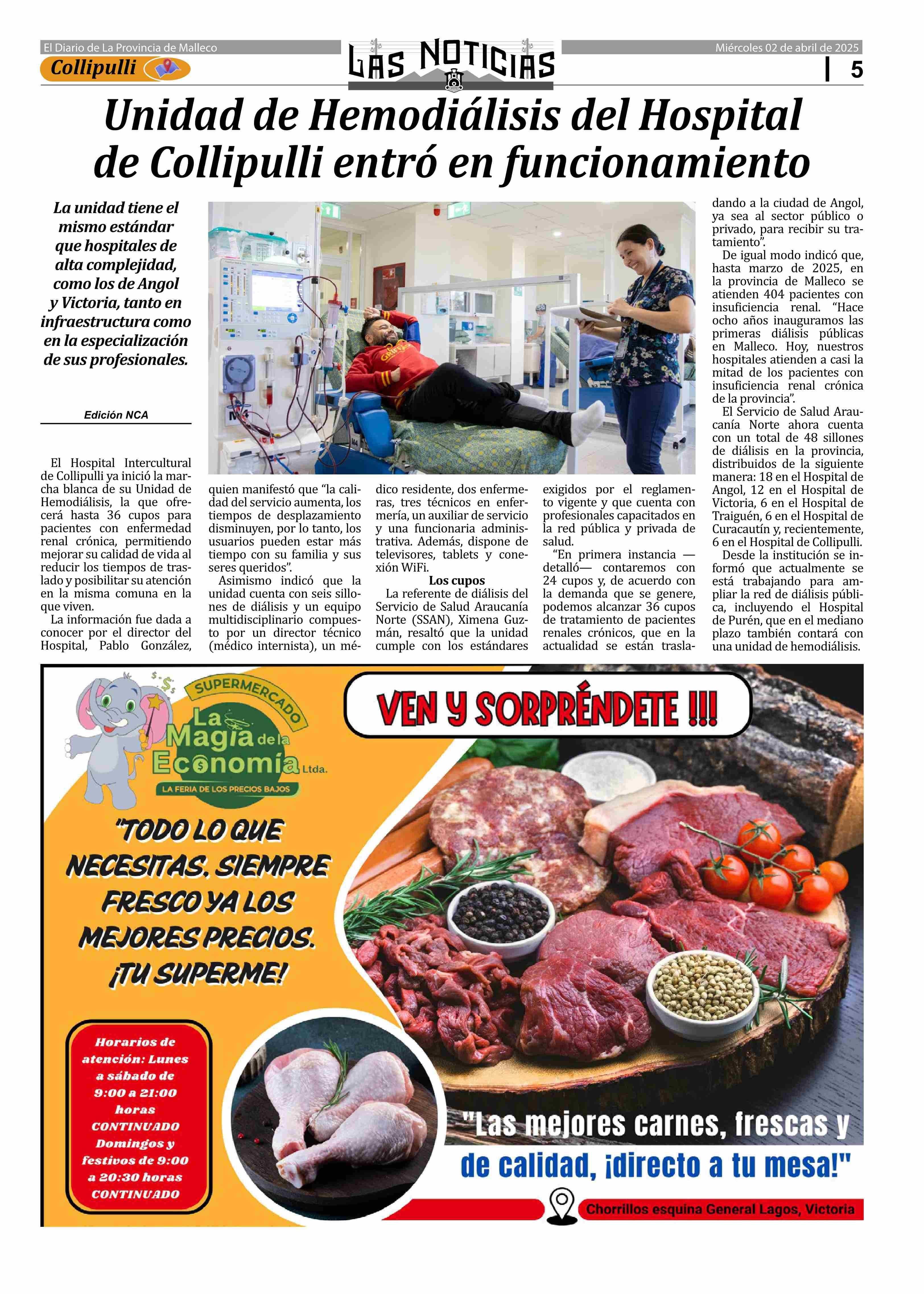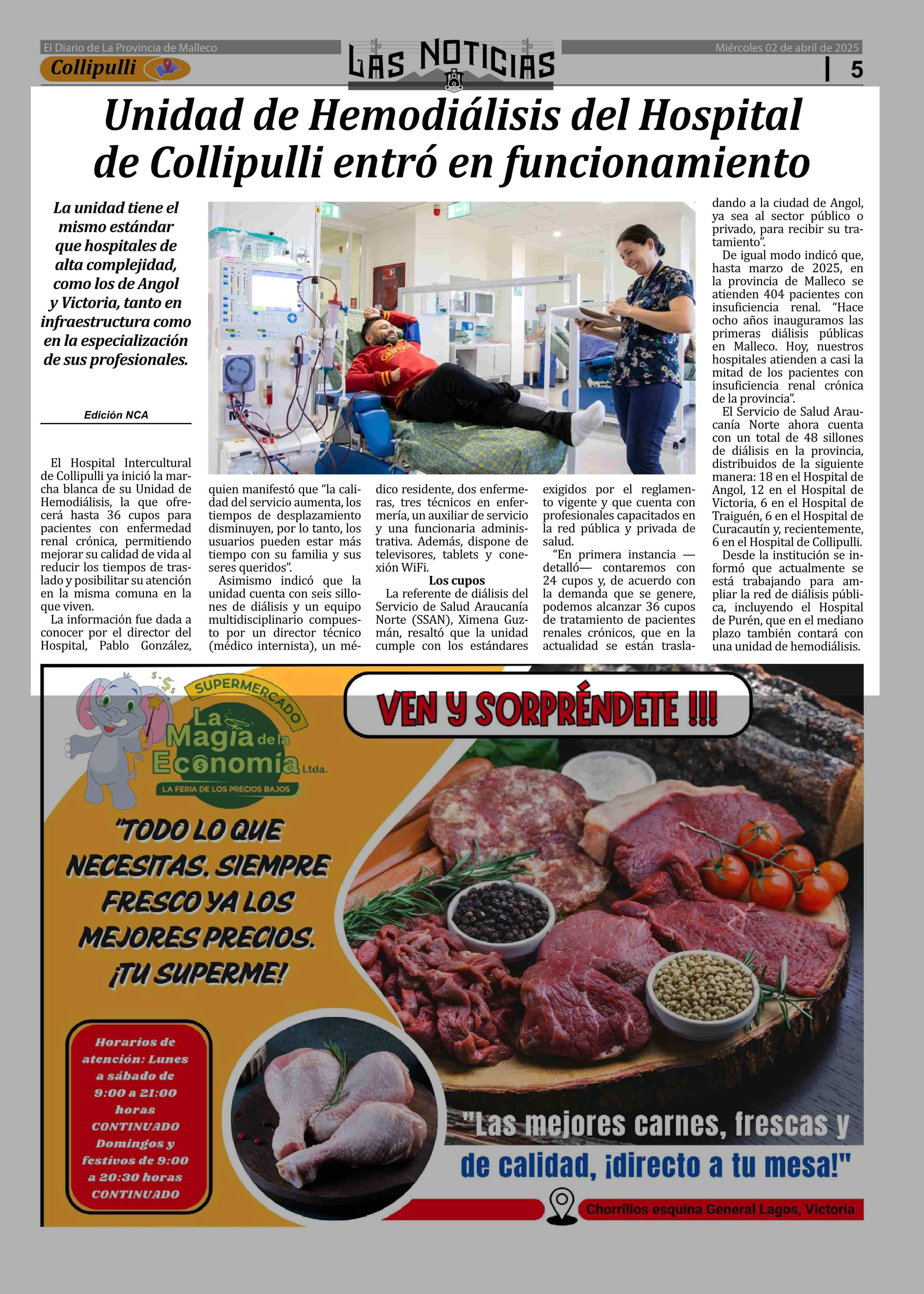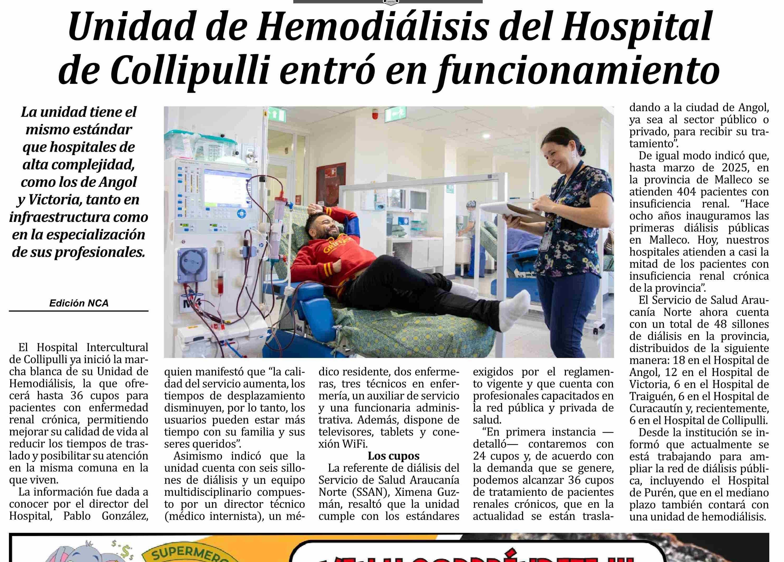 Unidad de Hemodiálisis del Hospital de Collipulli entró en funcionamiento 02-04-2025 Las Noticias |