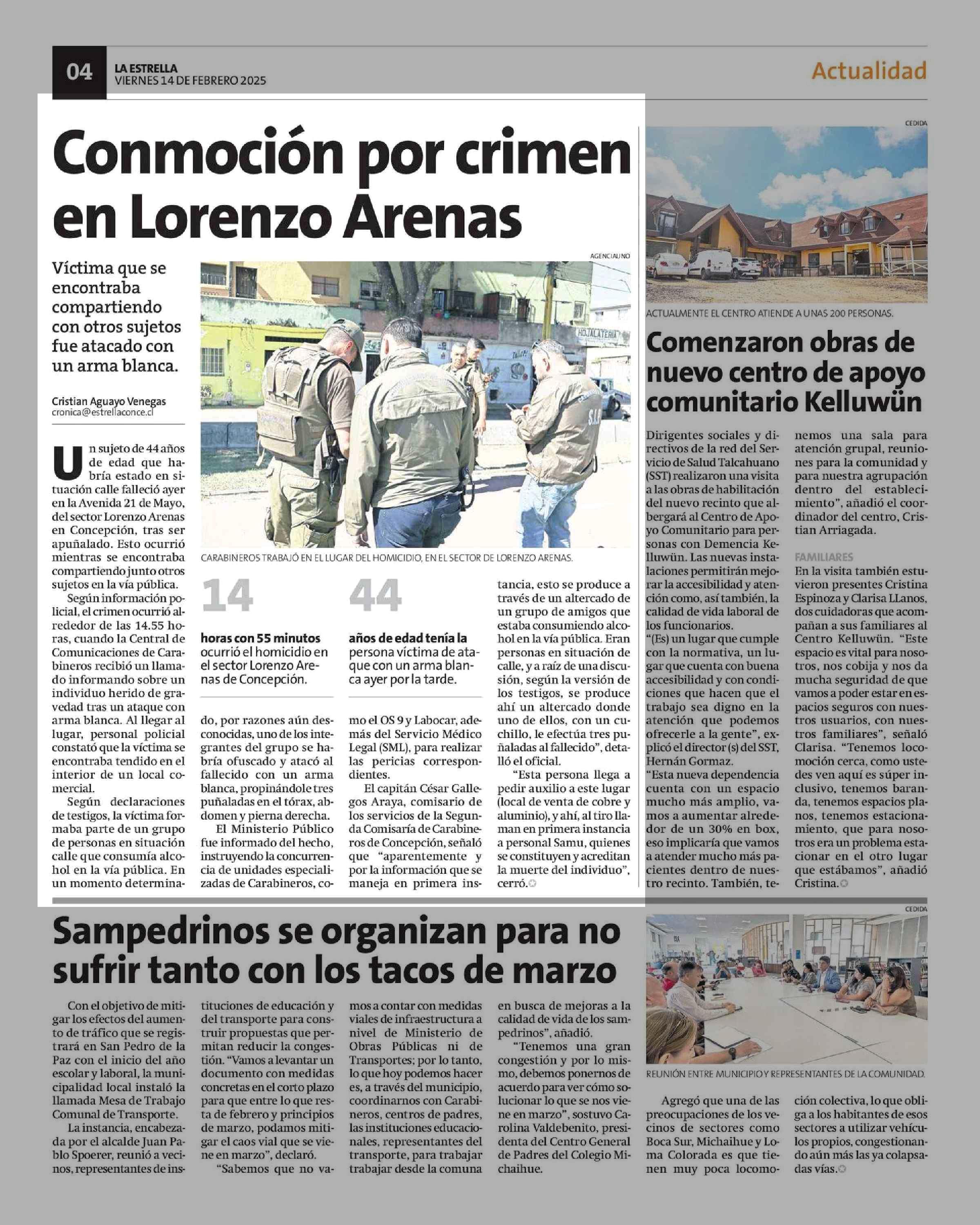 Onmoción por crimen en Lorenzo Arenas 14-02-2025 La Estrella de Concepción |