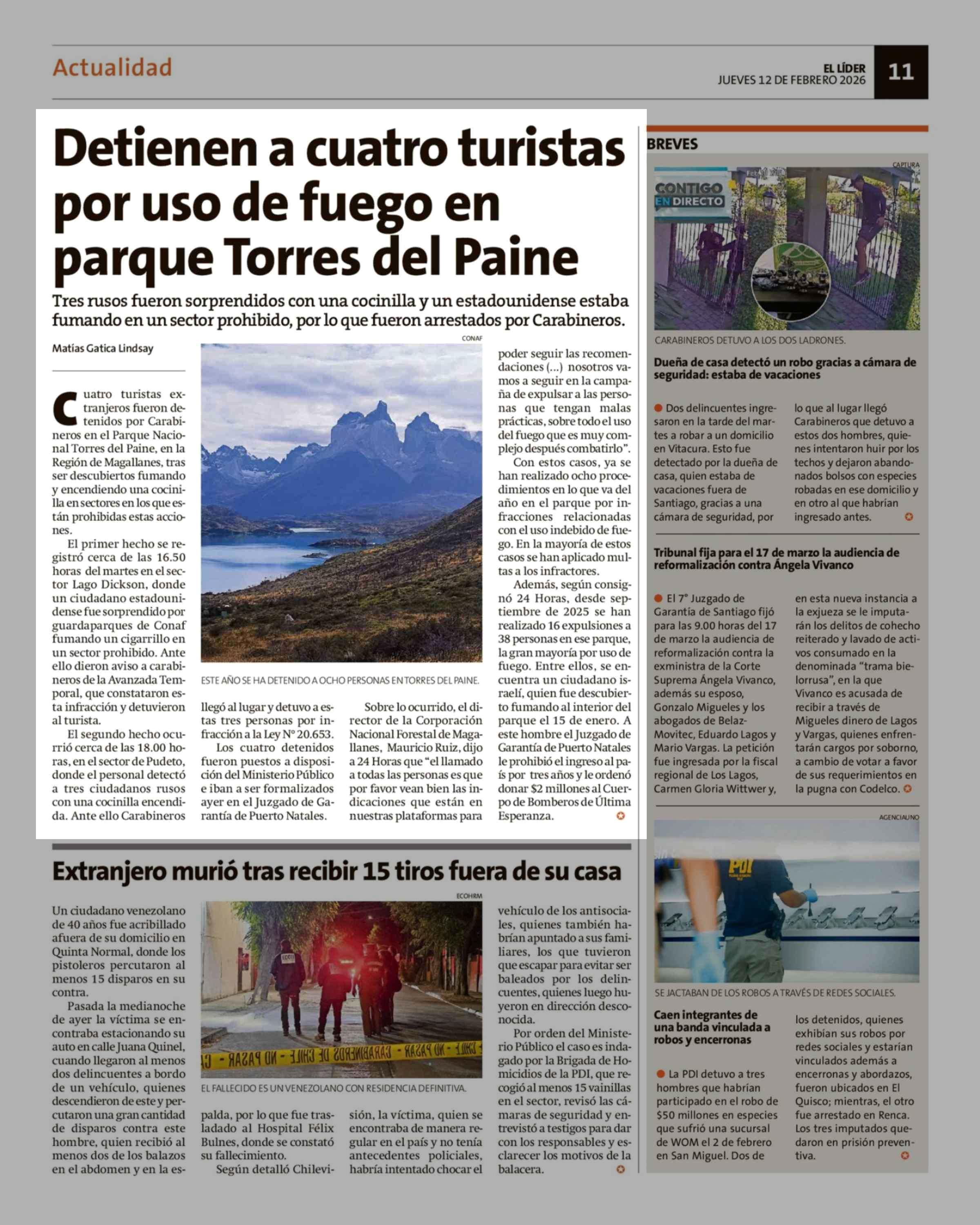 Título: Detienen a cuatro turistas por uso de fuego en parque Torres del Paine